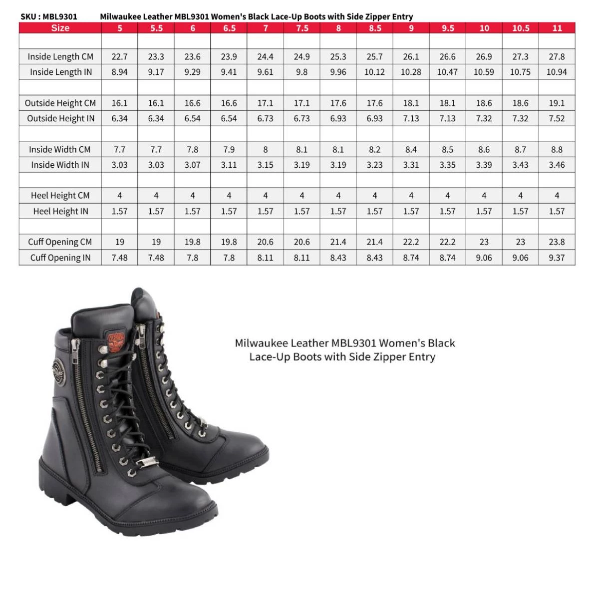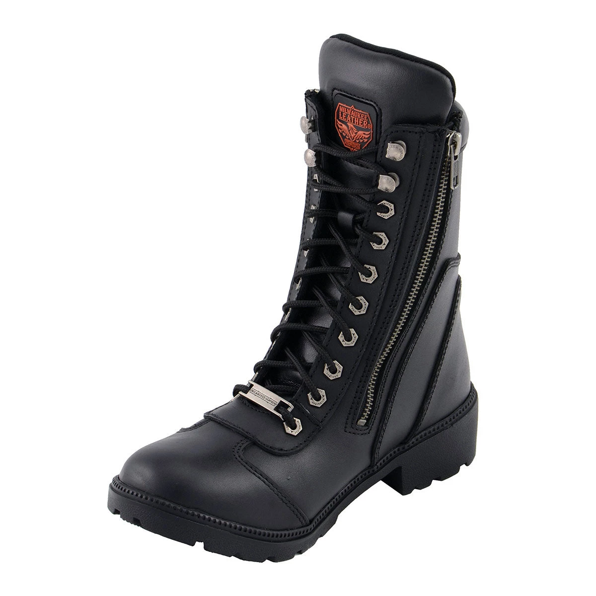 Milwaukee Leather MBL9301 Women’s Black Lace-Up Boots with Side Zipper Entry