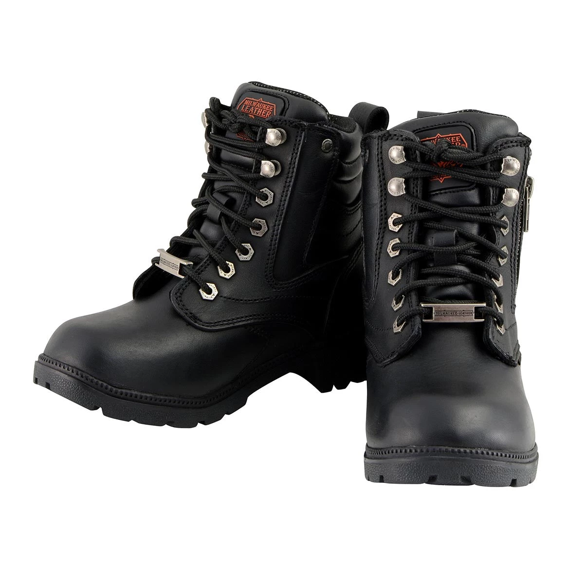 Milwaukee Leather MBL9321WP Womens Black Waterproof Lace-Up Boots with Side Zipper