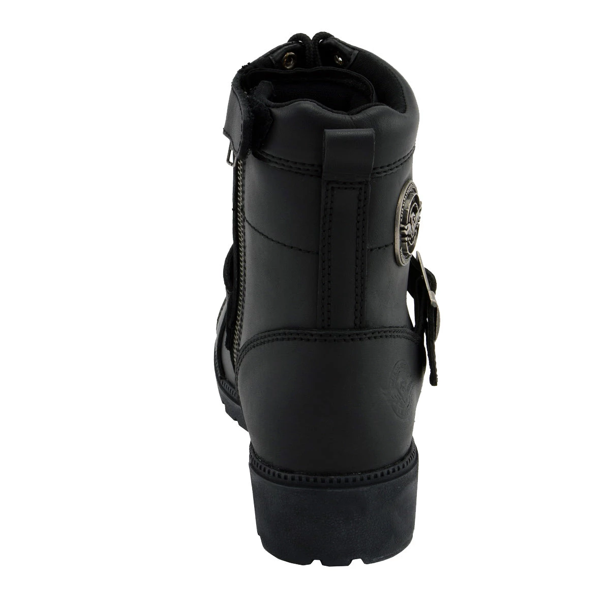 Milwaukee Leather MBL9325W Women’s Wide Width Lace-Up Black Leather Boots with Zippers