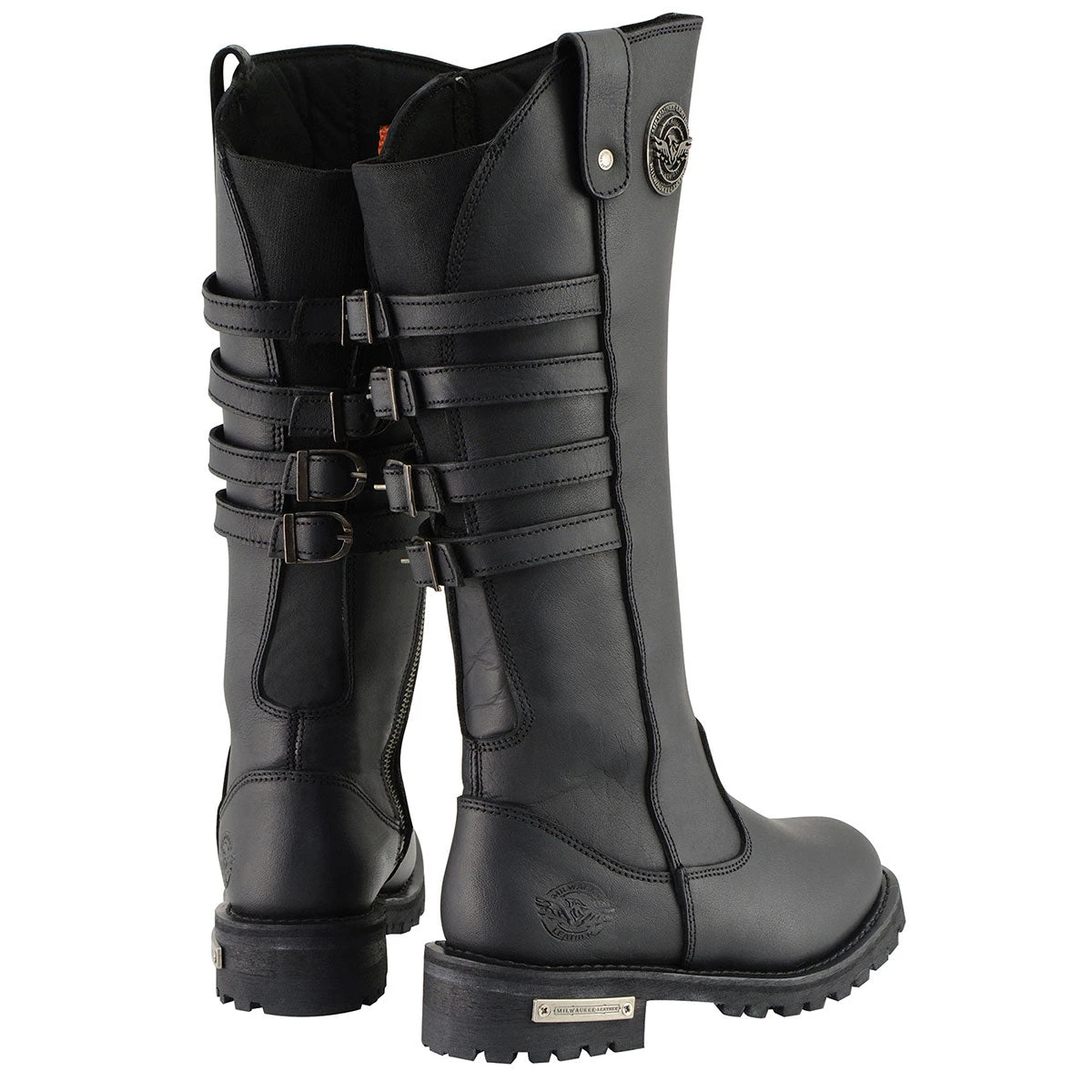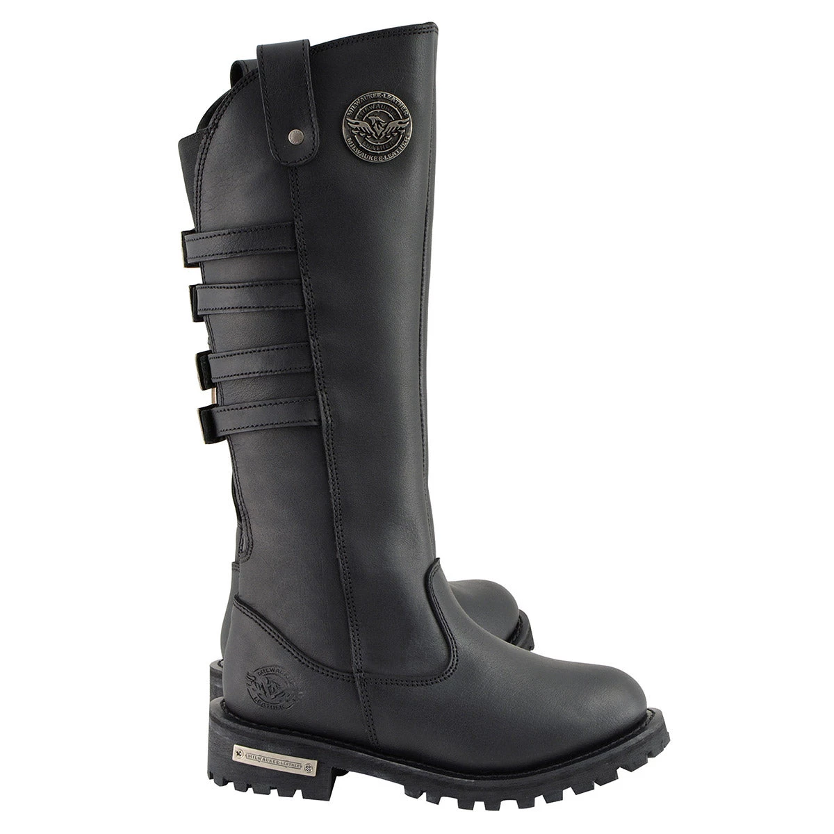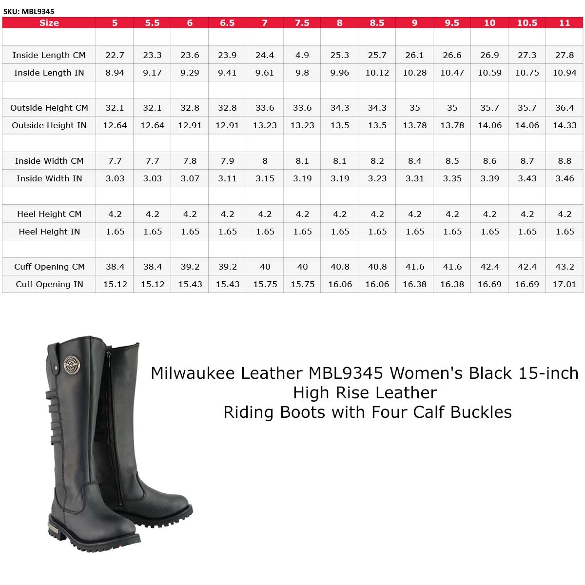 Milwaukee Leather MBL9345 Womens Black 15-inch High Rise Leather Riding Boots with Four Calf Buckles