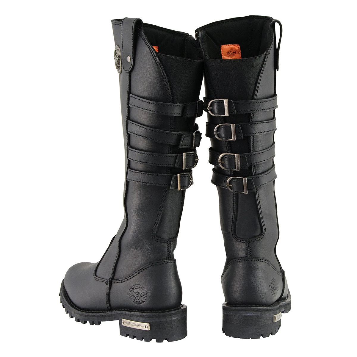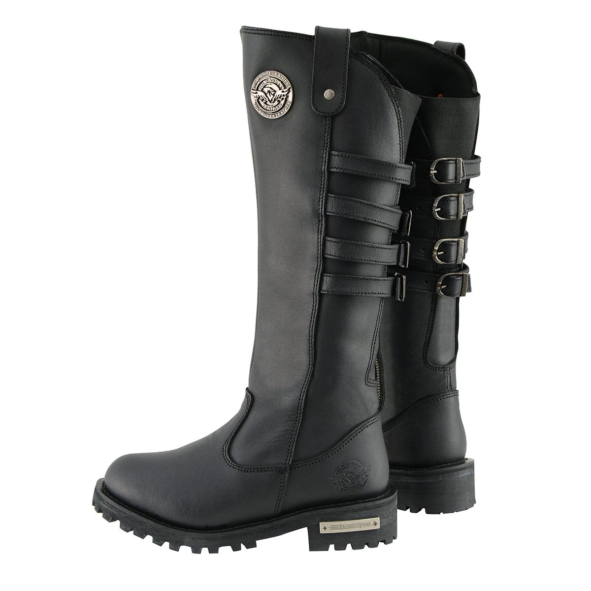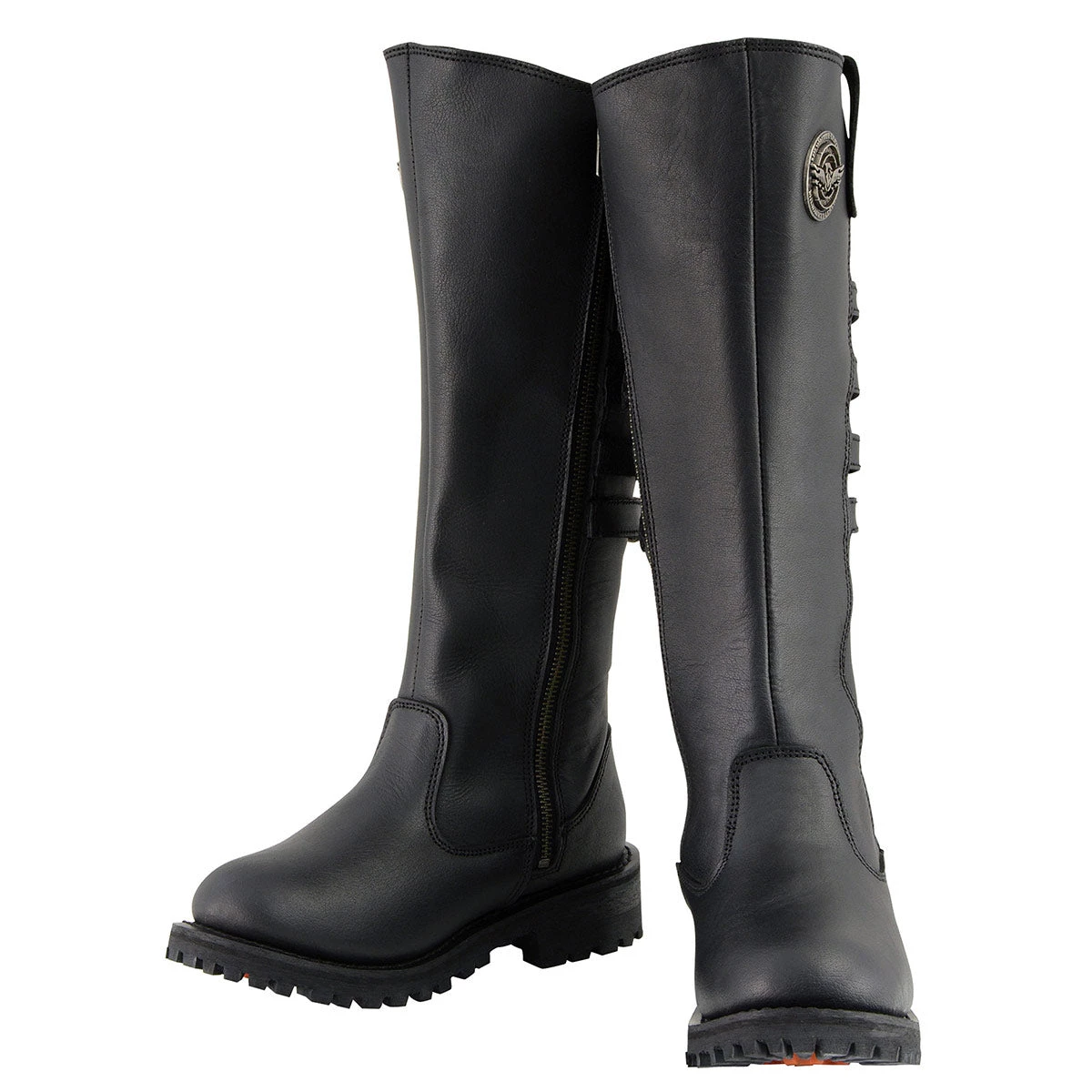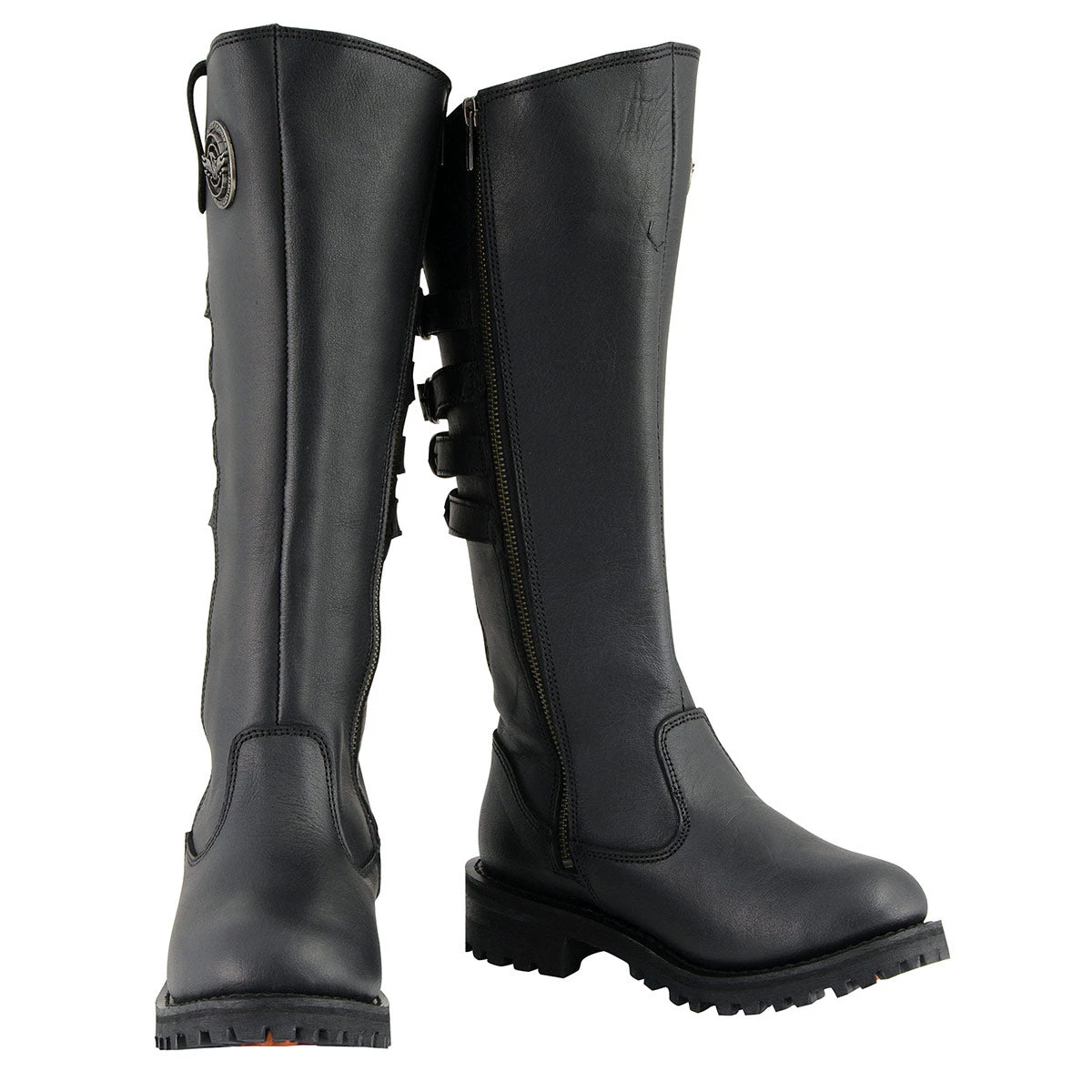 Milwaukee Leather MBL9345 Womens Black 15-inch High Rise Leather Riding Boots with Four Calf Buckles