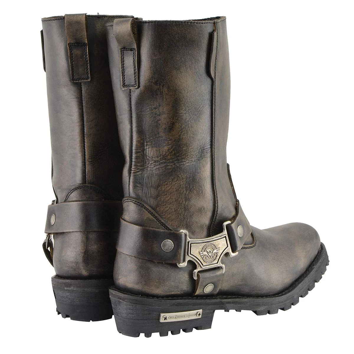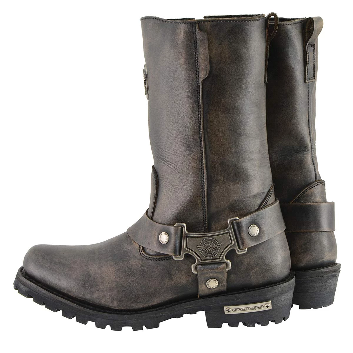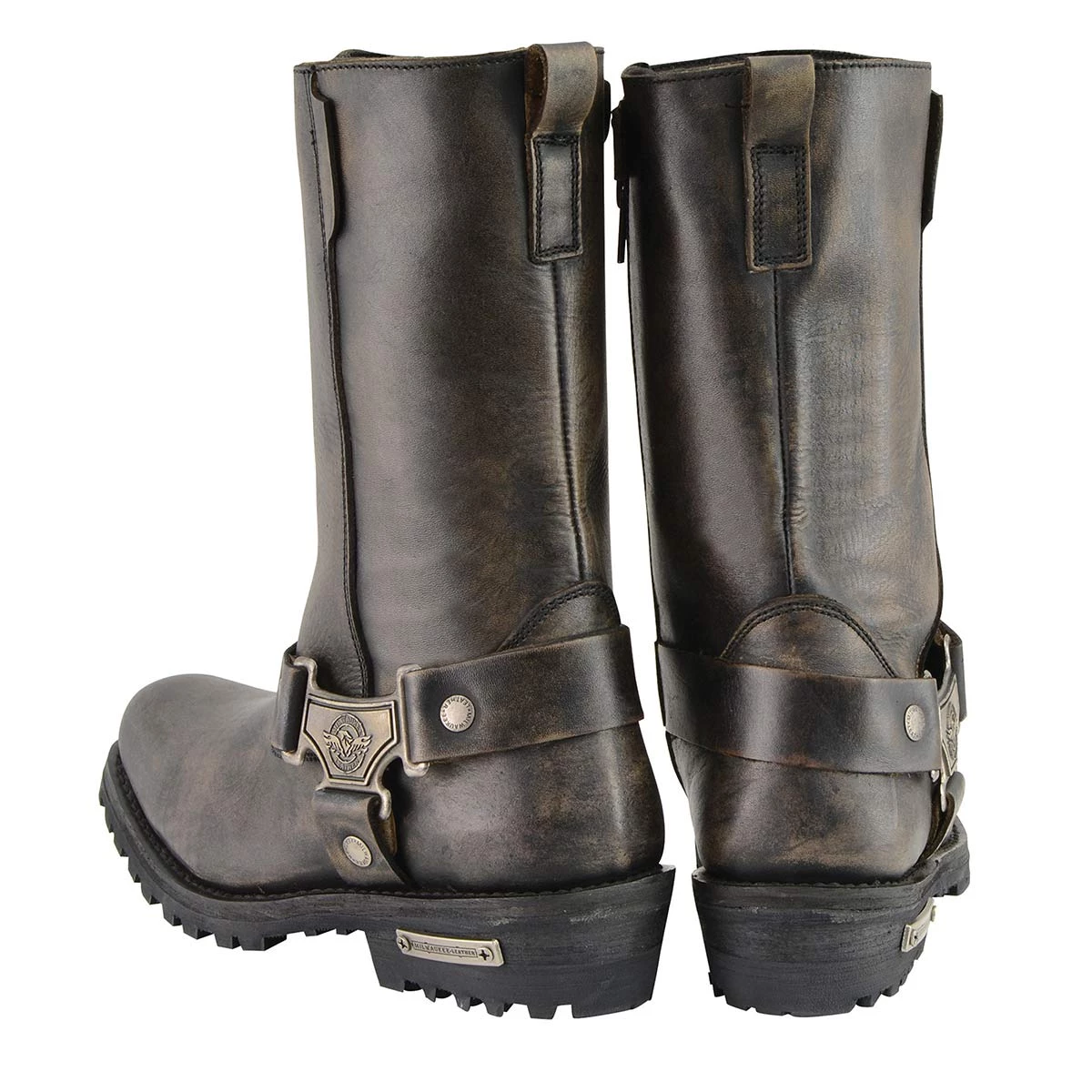 Milwaukee Leather MBL9361 Women’s Distressed Brown 11-inch Classic Harness Square Toe Boots