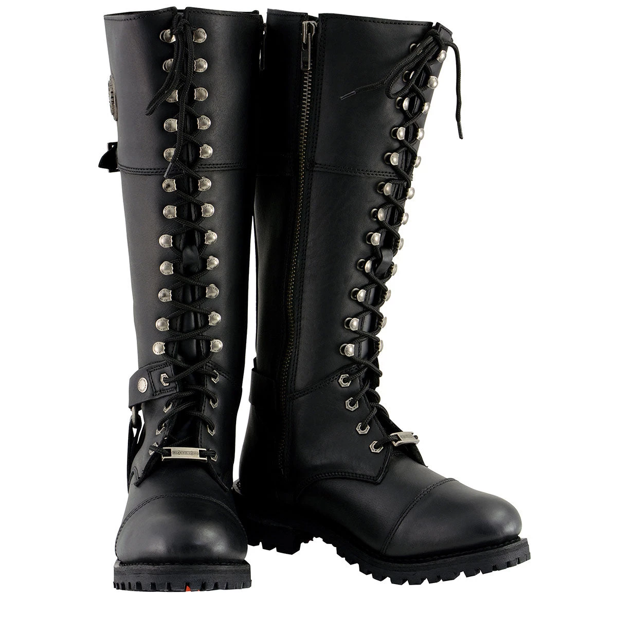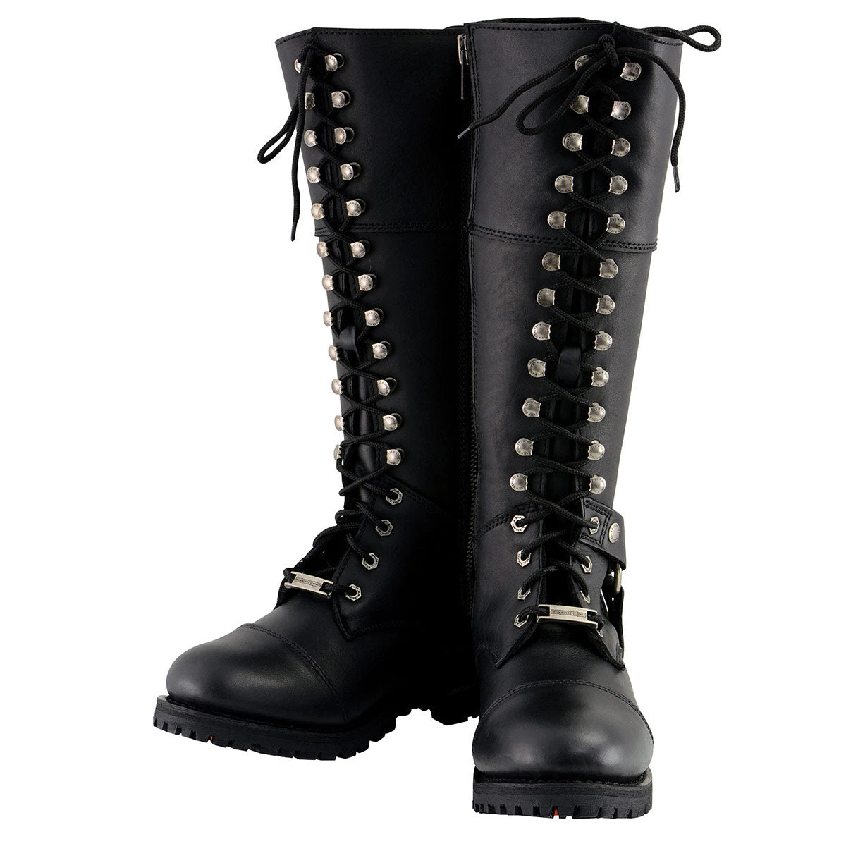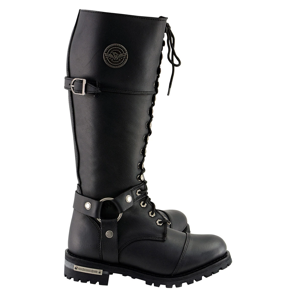 Milwaukee Leather MBL9390 Women’s Black 16-inch Lace-Up Front Cap Toe Riding Boots