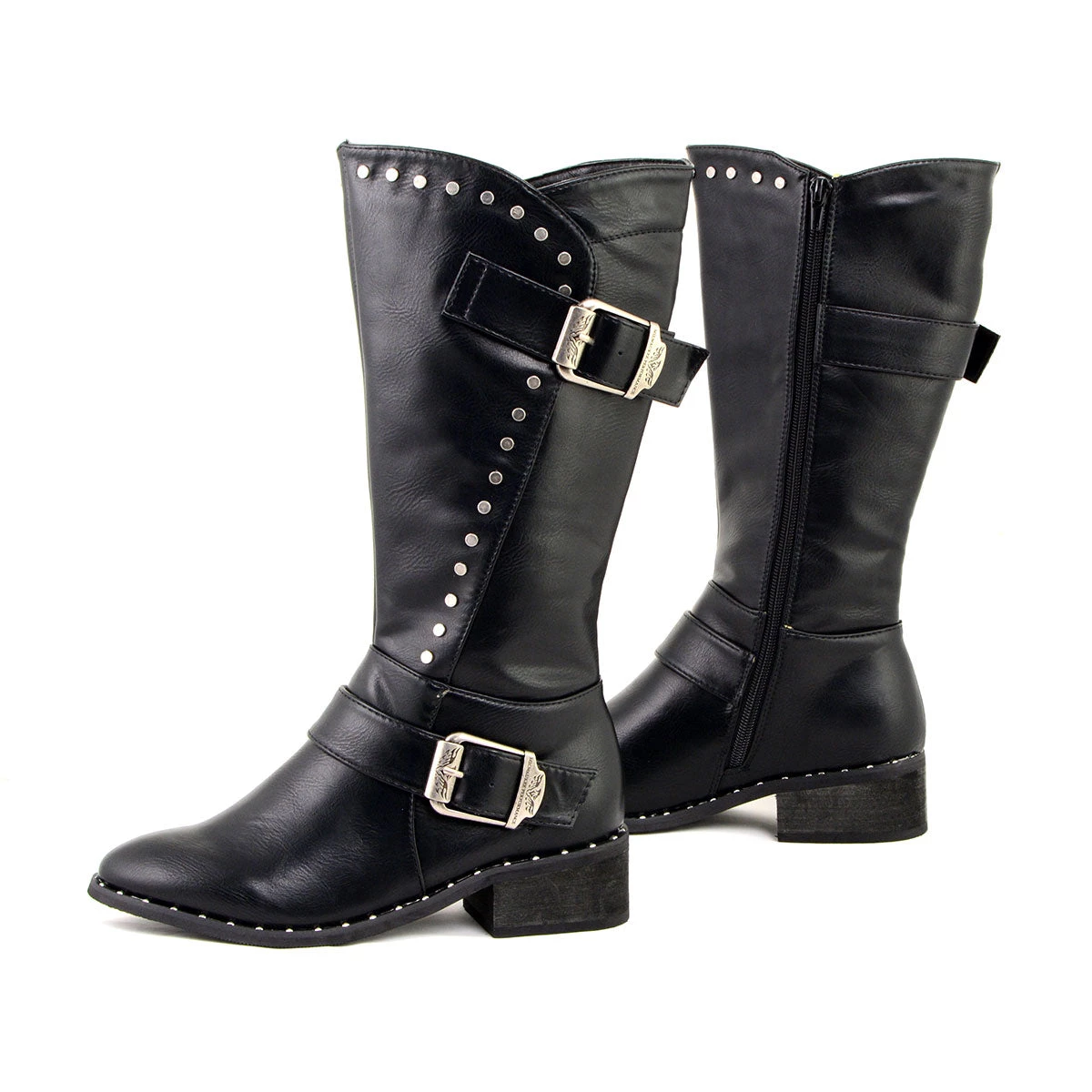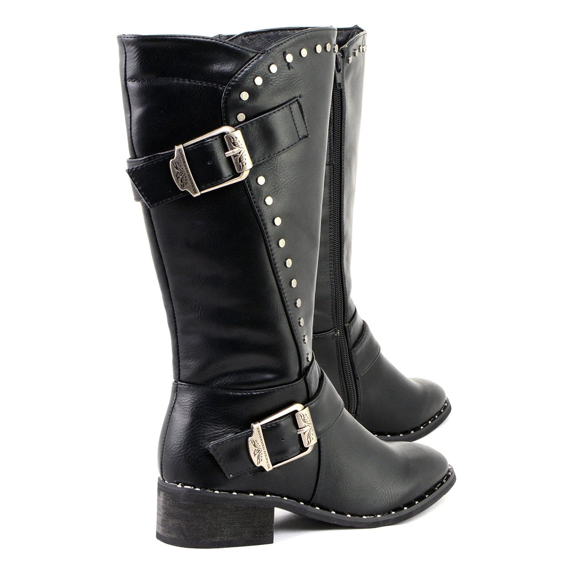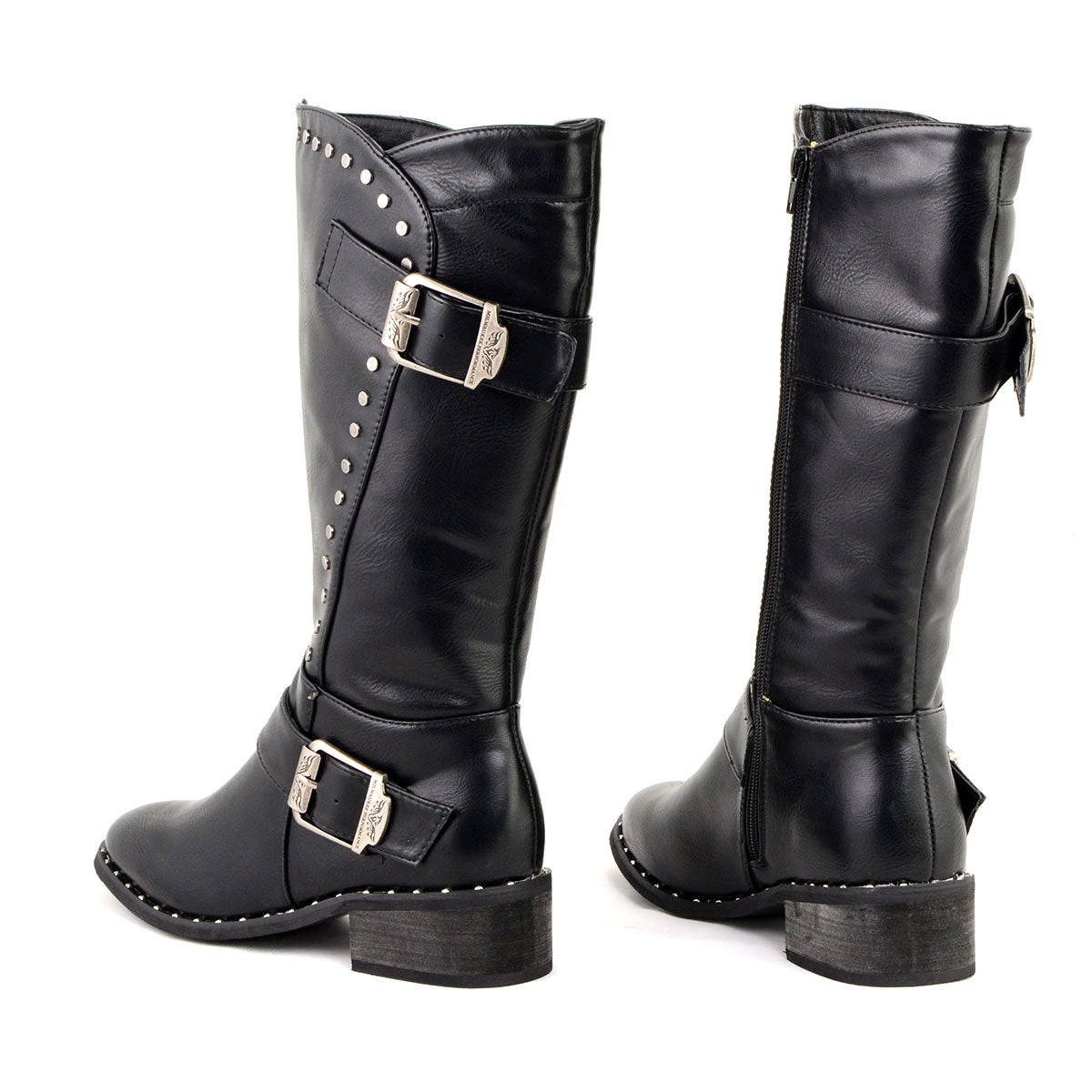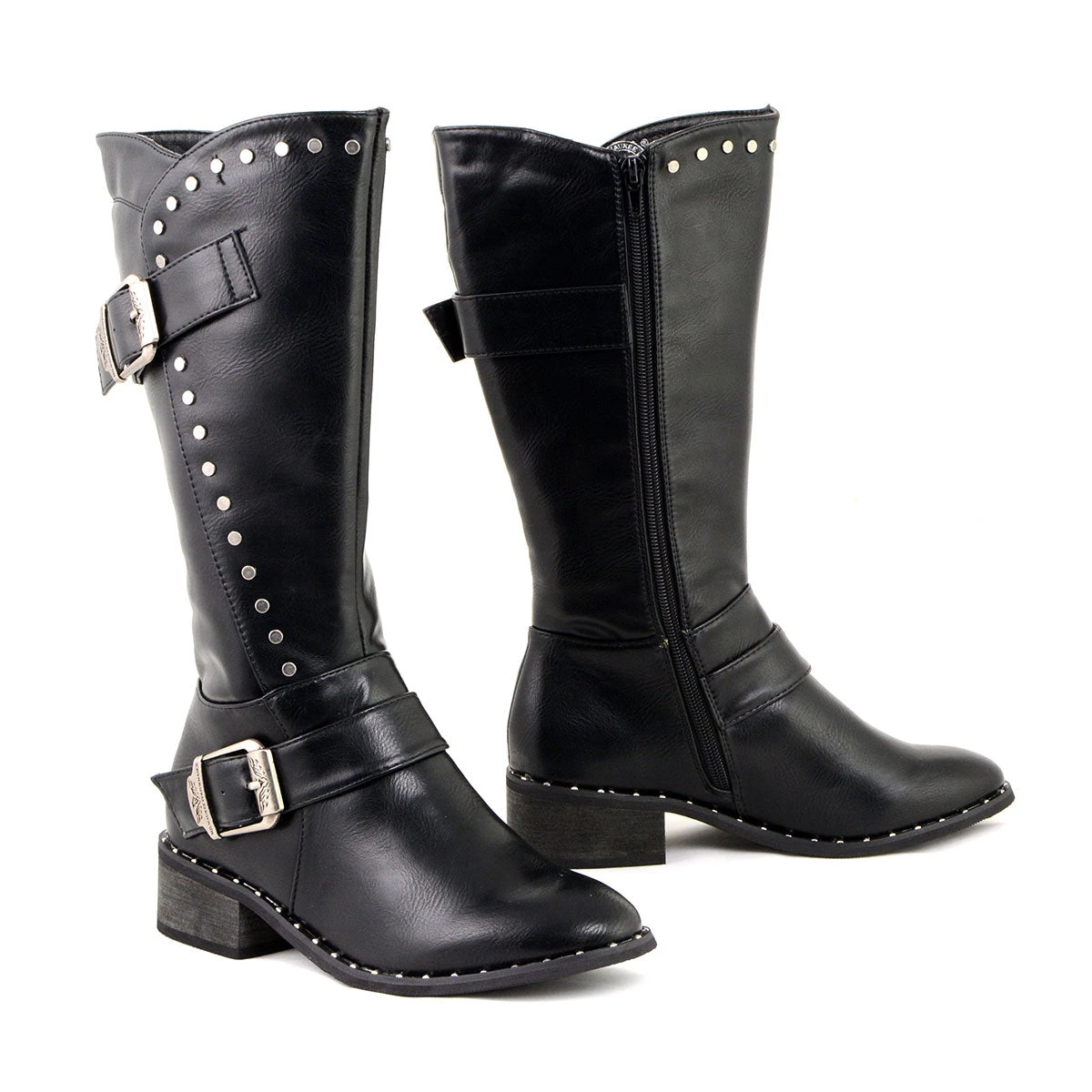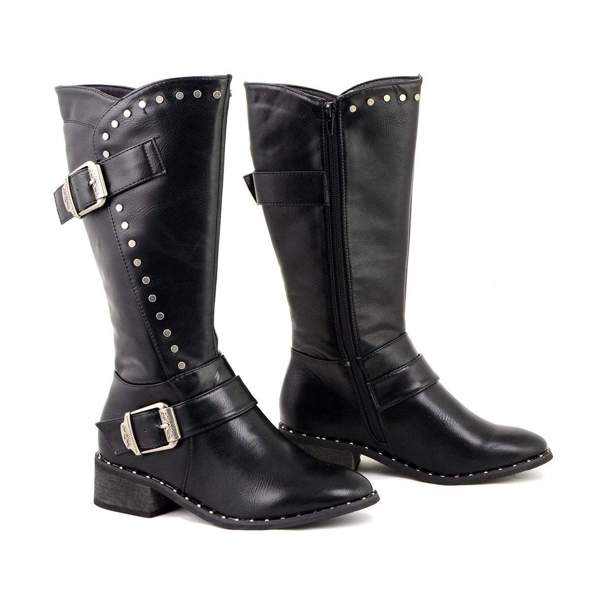 Milwaukee Leather MBL9423 Women’s Black Studded Boots with Studded Outsole
