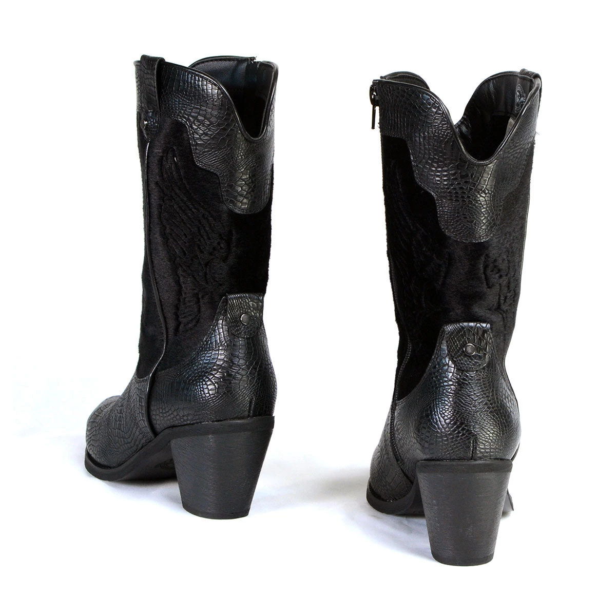 Milwaukee Leather Performance Apparel MBL9441 Ladies Black Western Boot with Black Snake Print