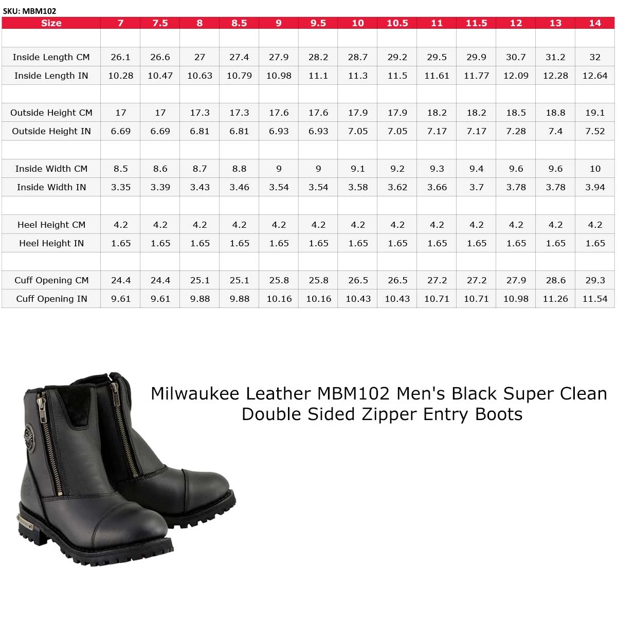 Milwaukee Leather MBM102 Men’s Black Super Clean Double Sided Zipper Entry Boots