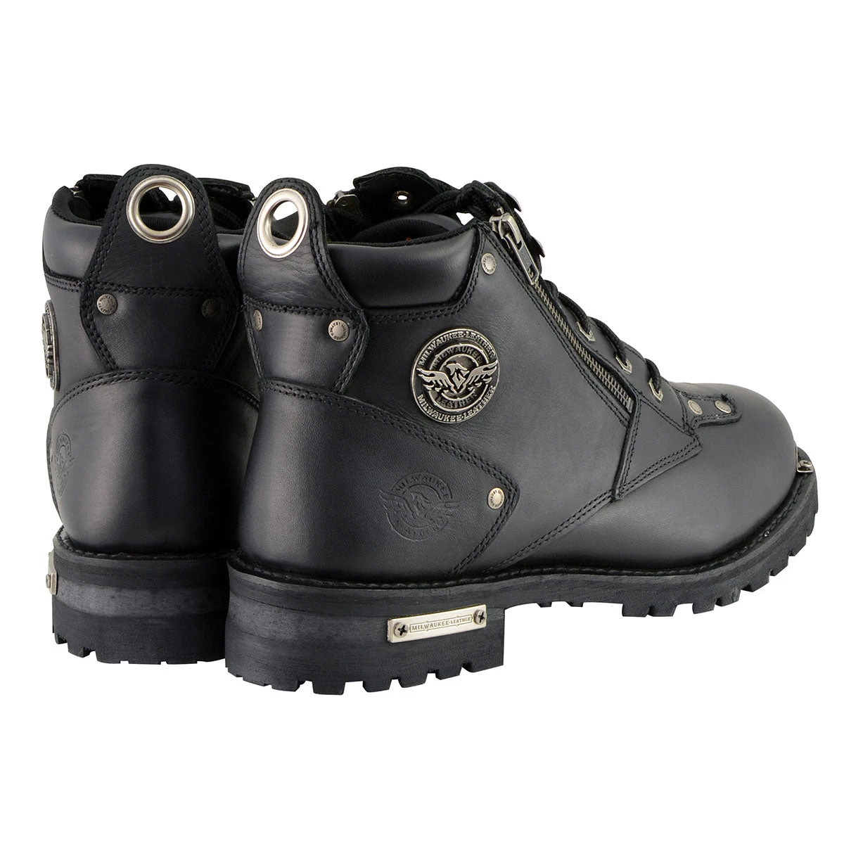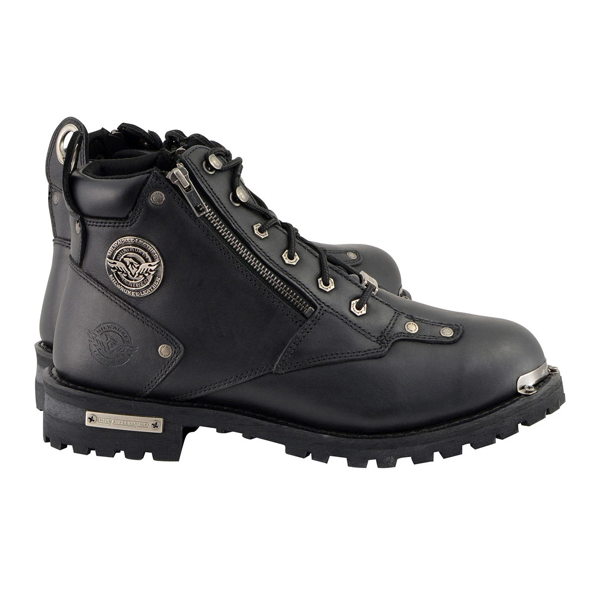 Milwaukee Leather MBM103W Men’s Black Lace-Up ‘Wide-Width’ Boots with Double Sided Zipper Entry