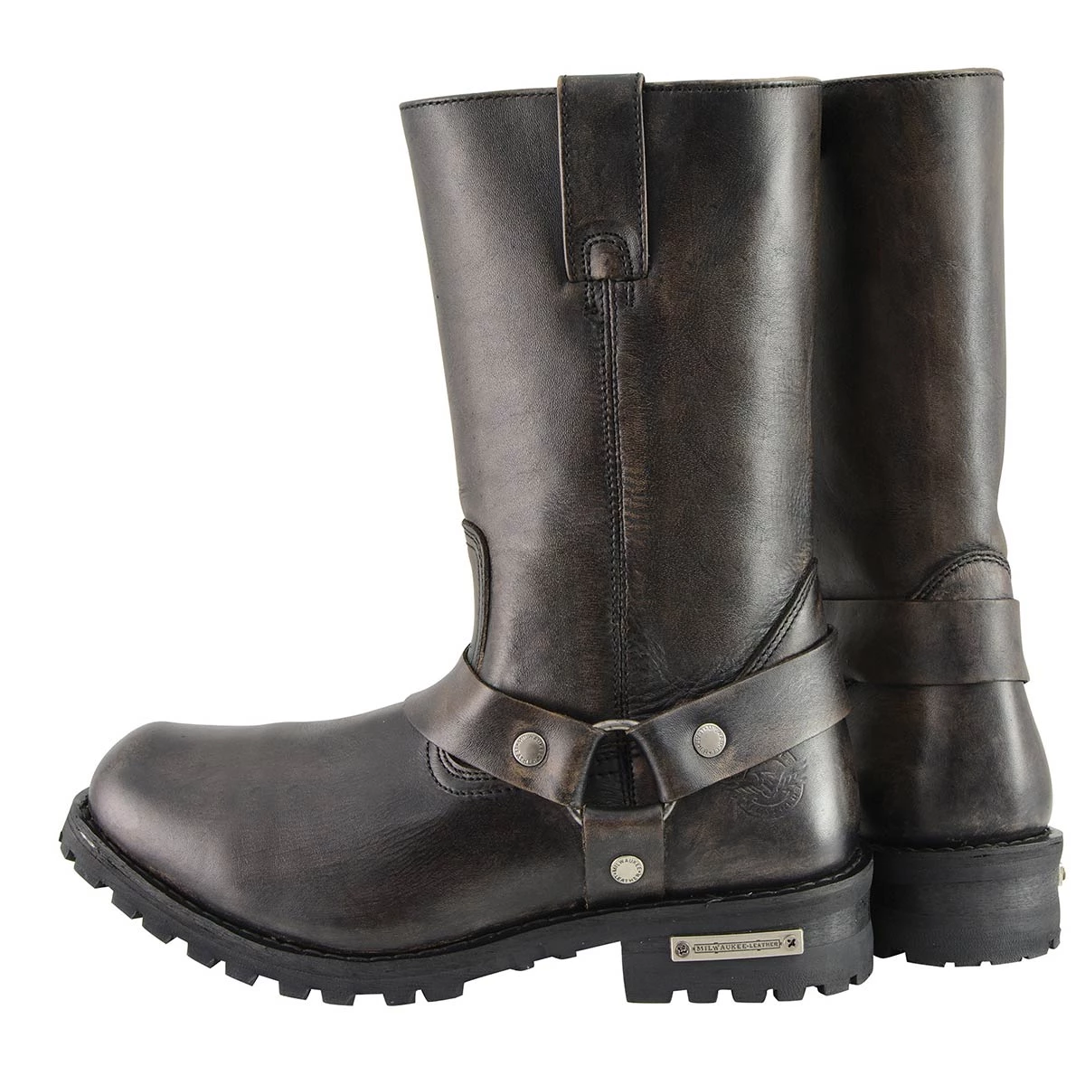 Milwaukee Leather MBM9005W Men’s Distressed Brown ‘Wide Width’ 11-inch Classic Harness Square Toe Boots