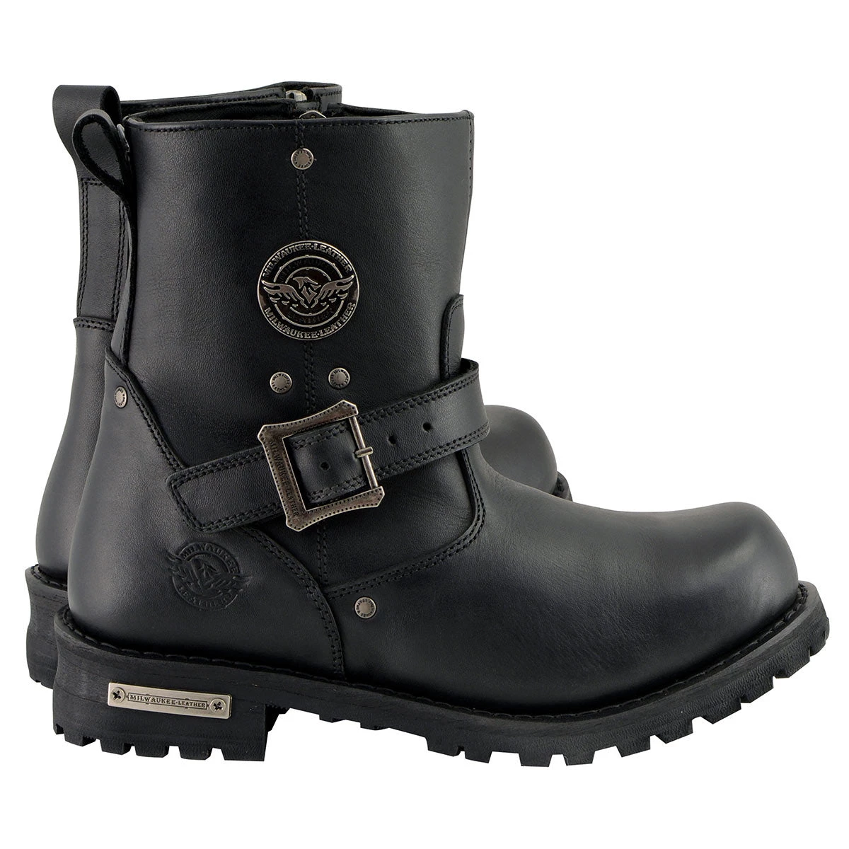 Milwaukee Leather MBM9040W Men’s Black ‘Wide Width’ 6-inch Classic Engineer Boots with Side Zipper