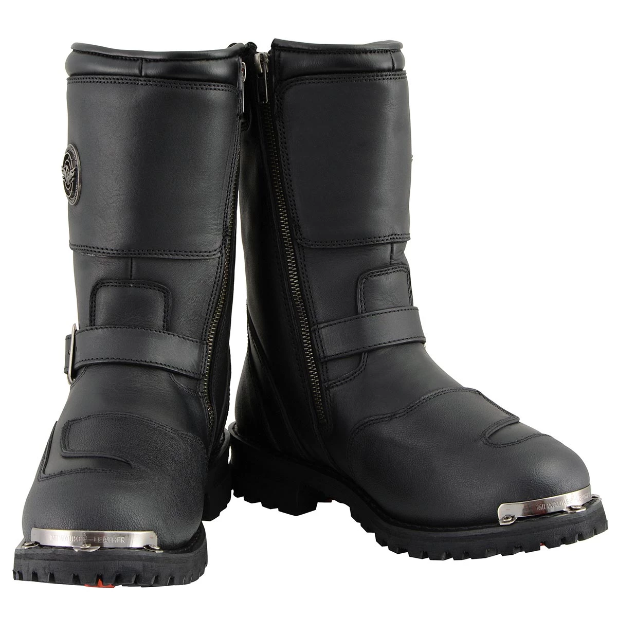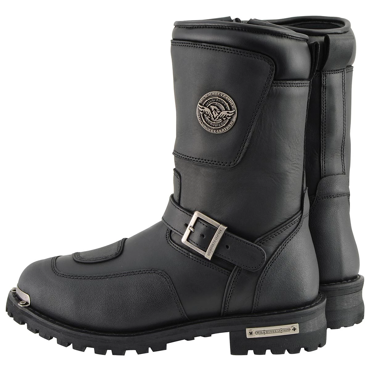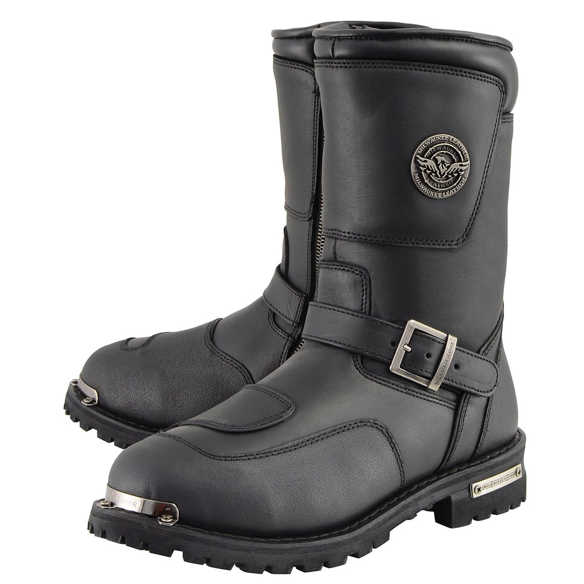 Milwaukee Leather MBM9070 Men’s Wide-Width Black Engineer Boots with Reflective Piping and Gear Shift Protection