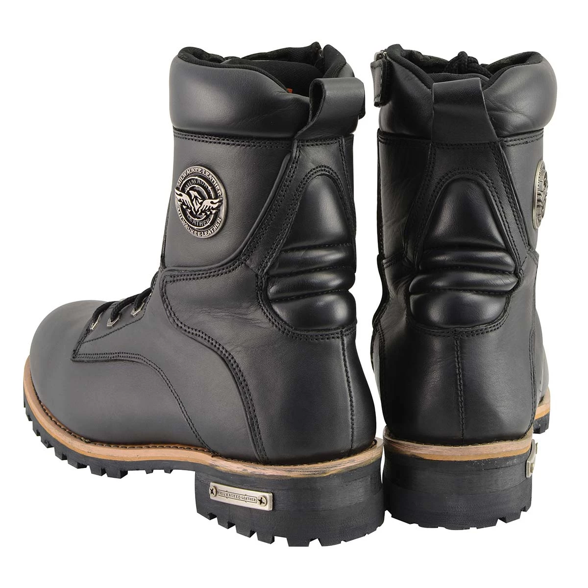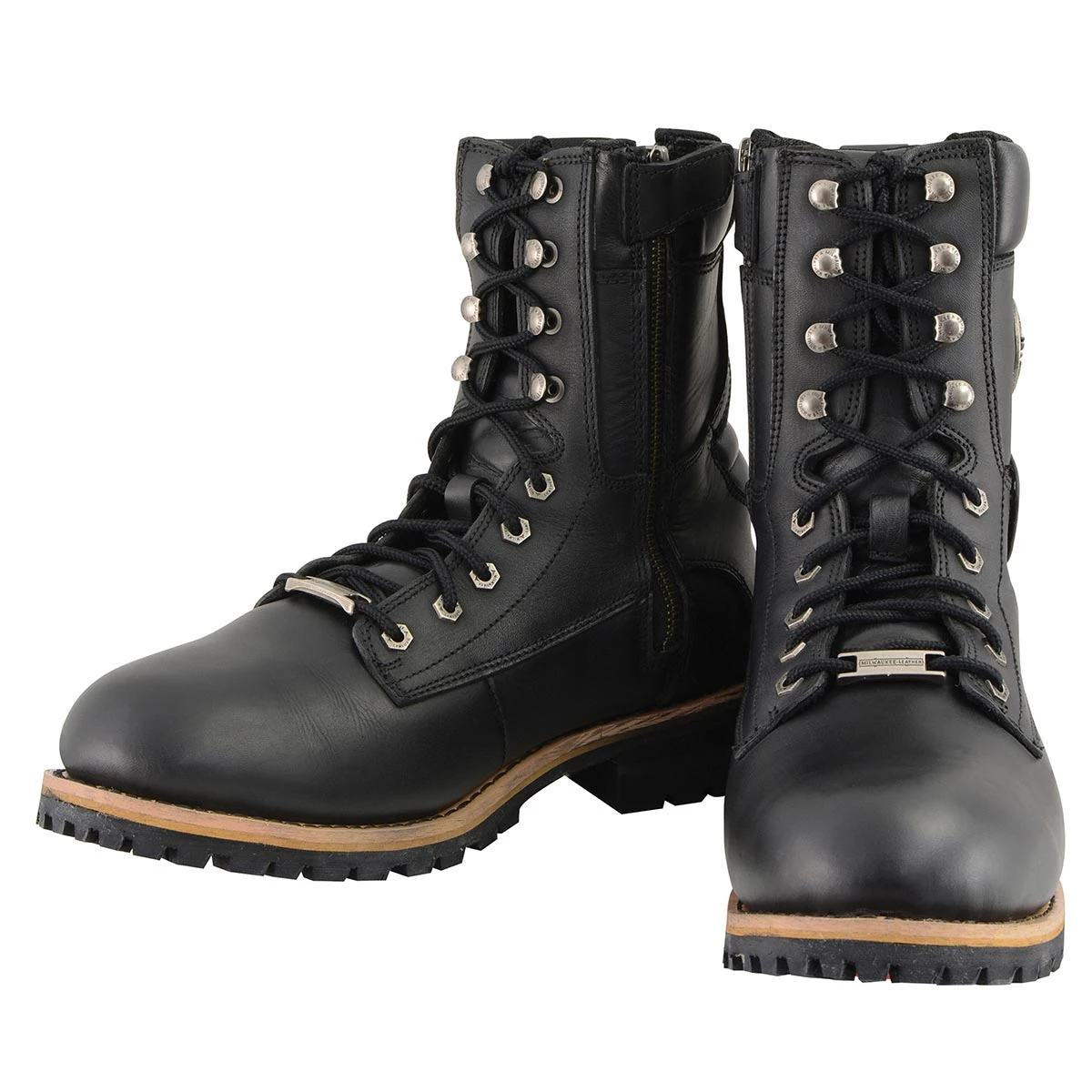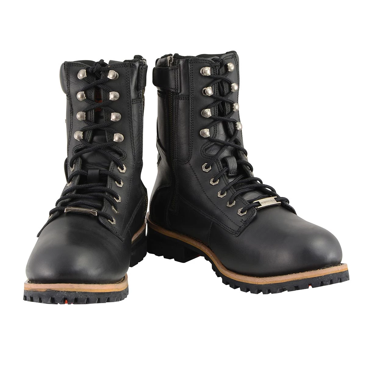 Milwaukee Leather MBM9095W Men’s Classic Black ‘Wide Width’ Lace-Up Logger Boots with Side Zipper