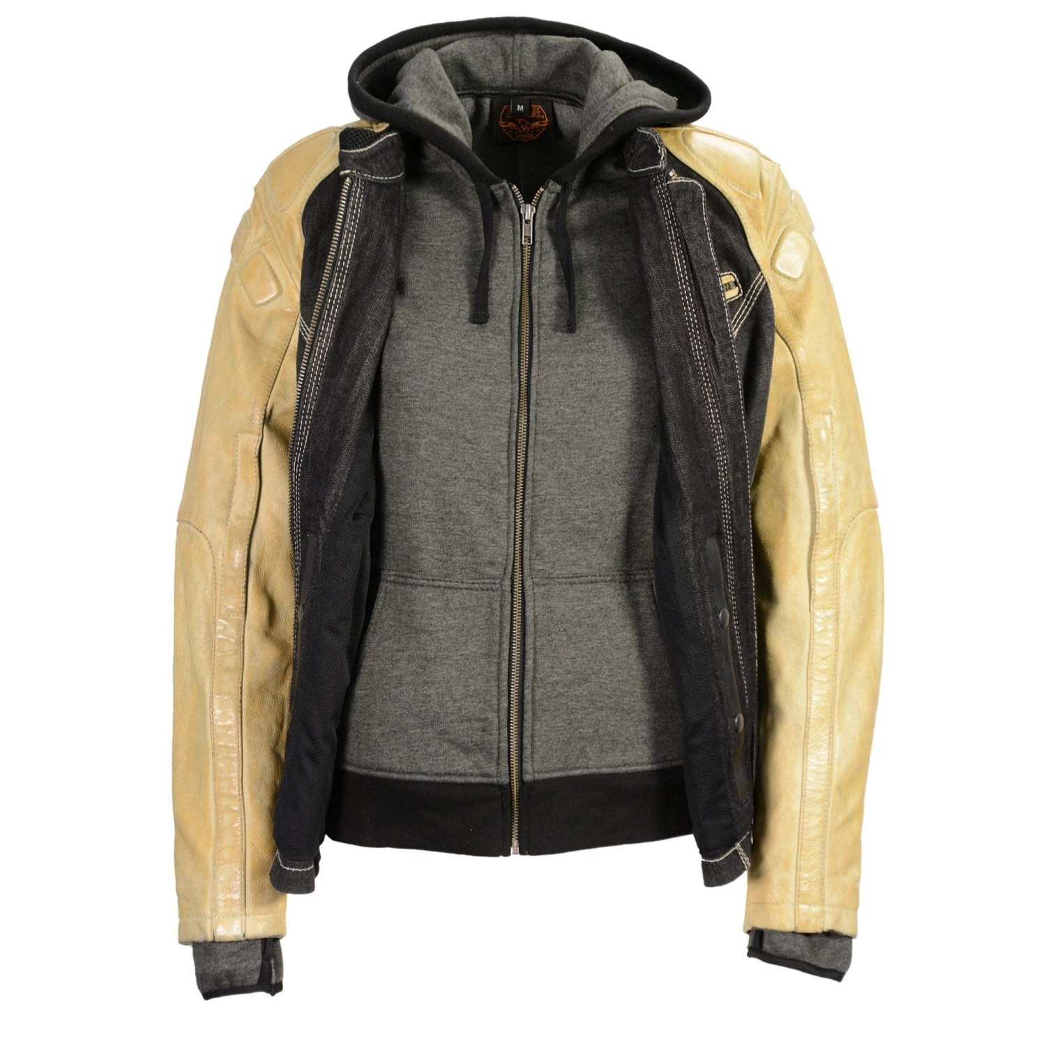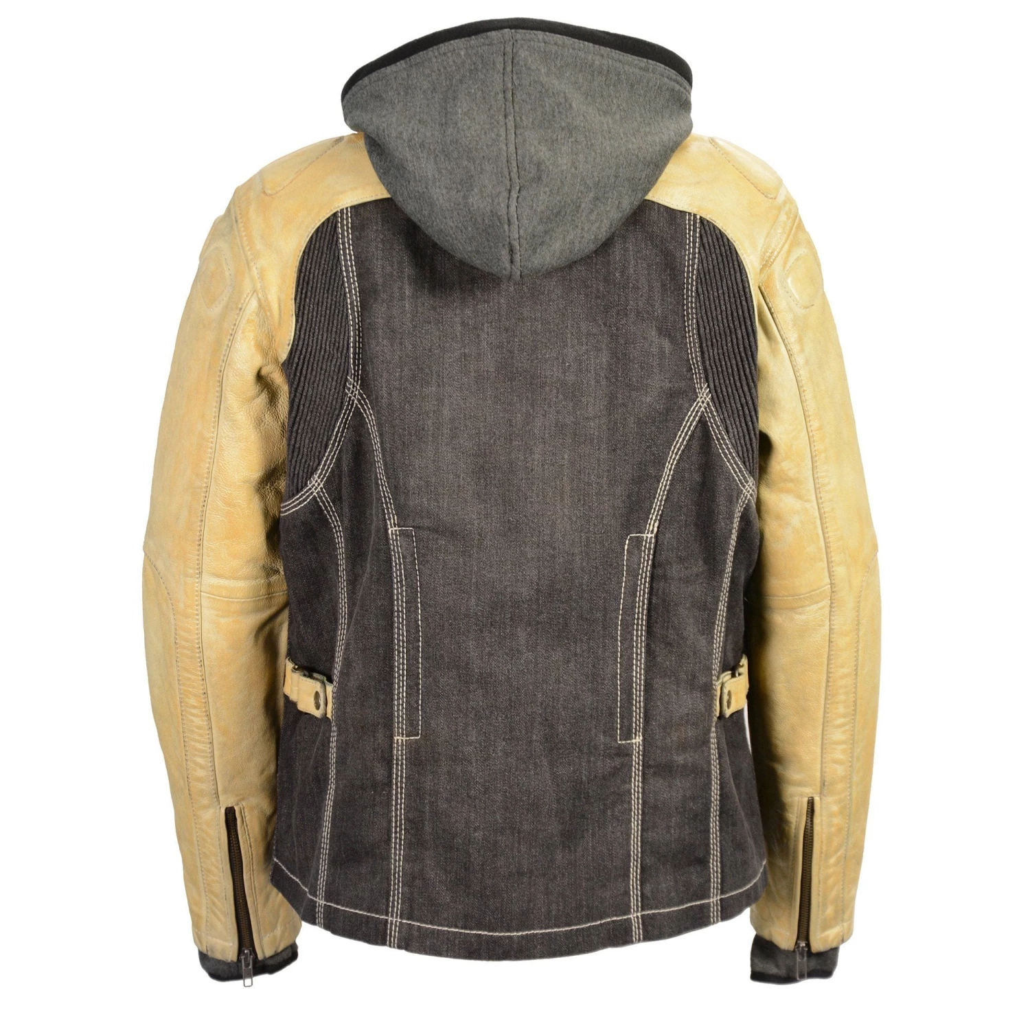 Milwaukee Leather MDL2005 Ladies Two Tone Black and Beige Denim and Leather Scuba Jacket with Full Hoodie Jacket Liner