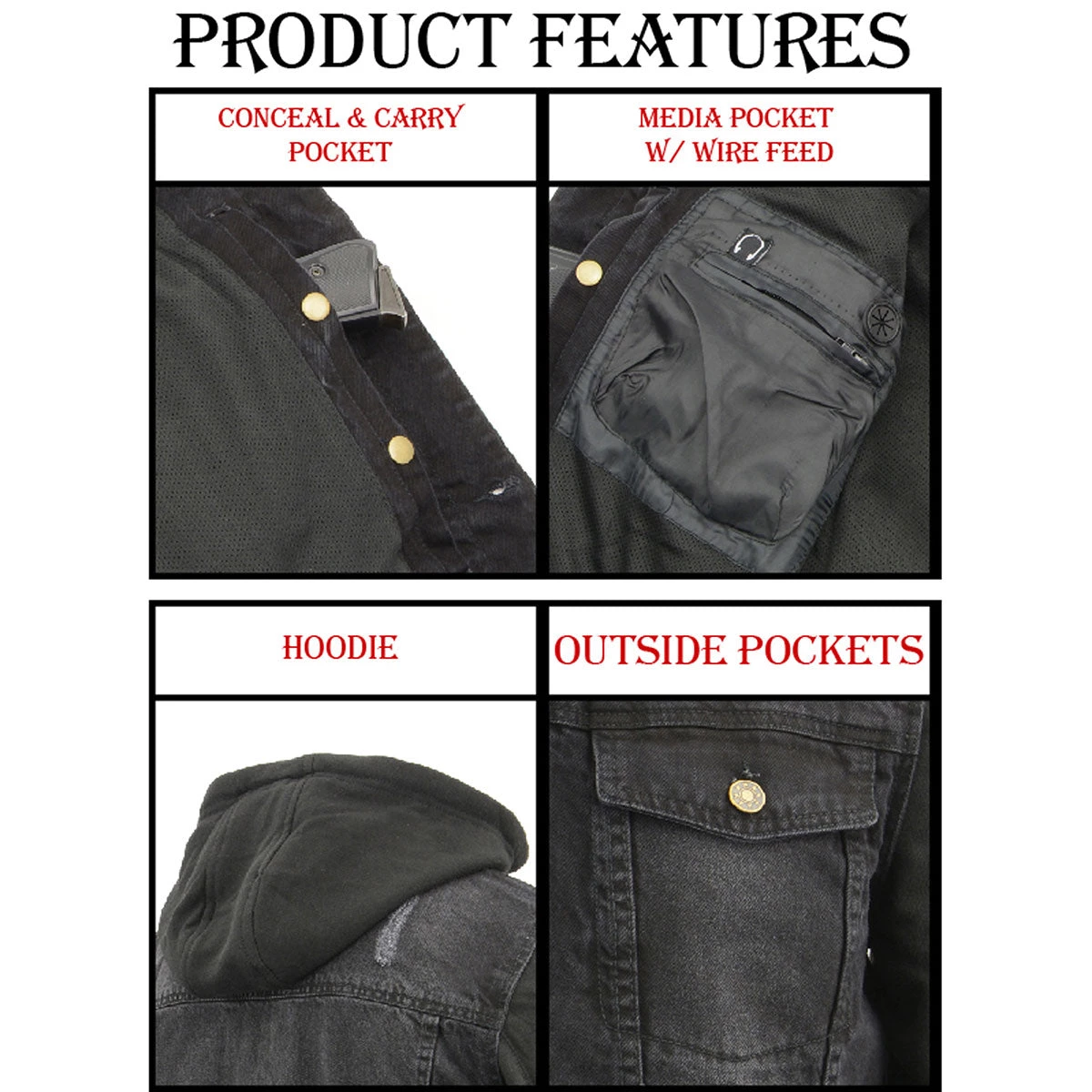 Milwaukee Leather MDM1000 Men’s Black Denim Hoodie Jean Pocket Jacket