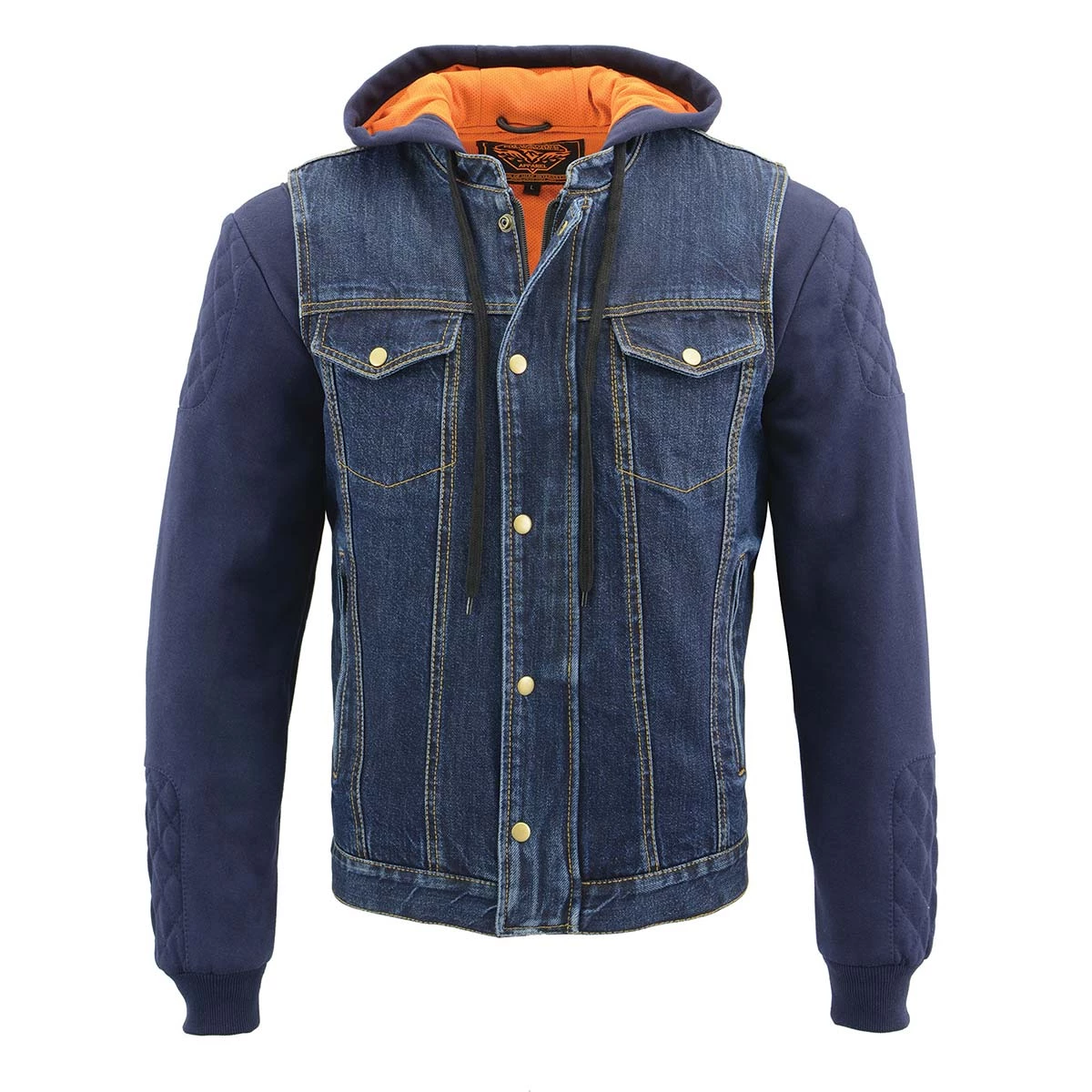 Milwaukee Leather MDM3020 Men’s Blue Denim ‘5 in 1’ Club Style Vest with Fully Removable Hoodie Jacket