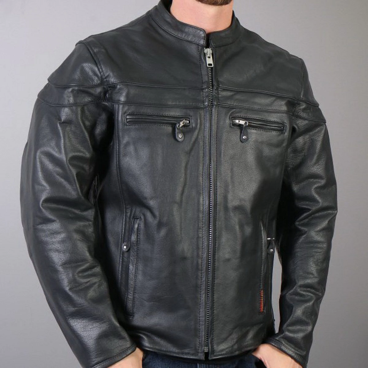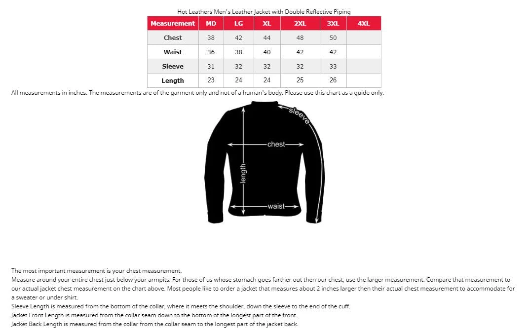 Hot Leathers Men’s Leather Jacket with Double Reflective Piping