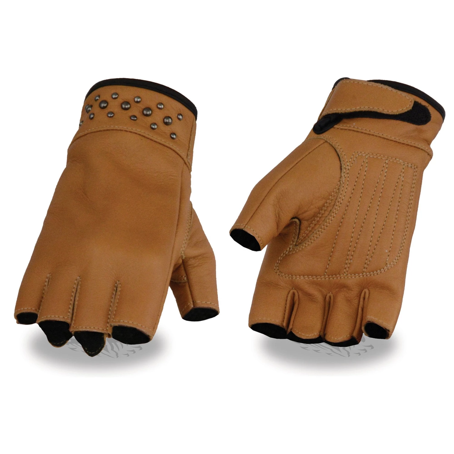 Milwaukee Leather MG7761 Ladies Fingerless Saddle Leather Gloves with Gel Palms