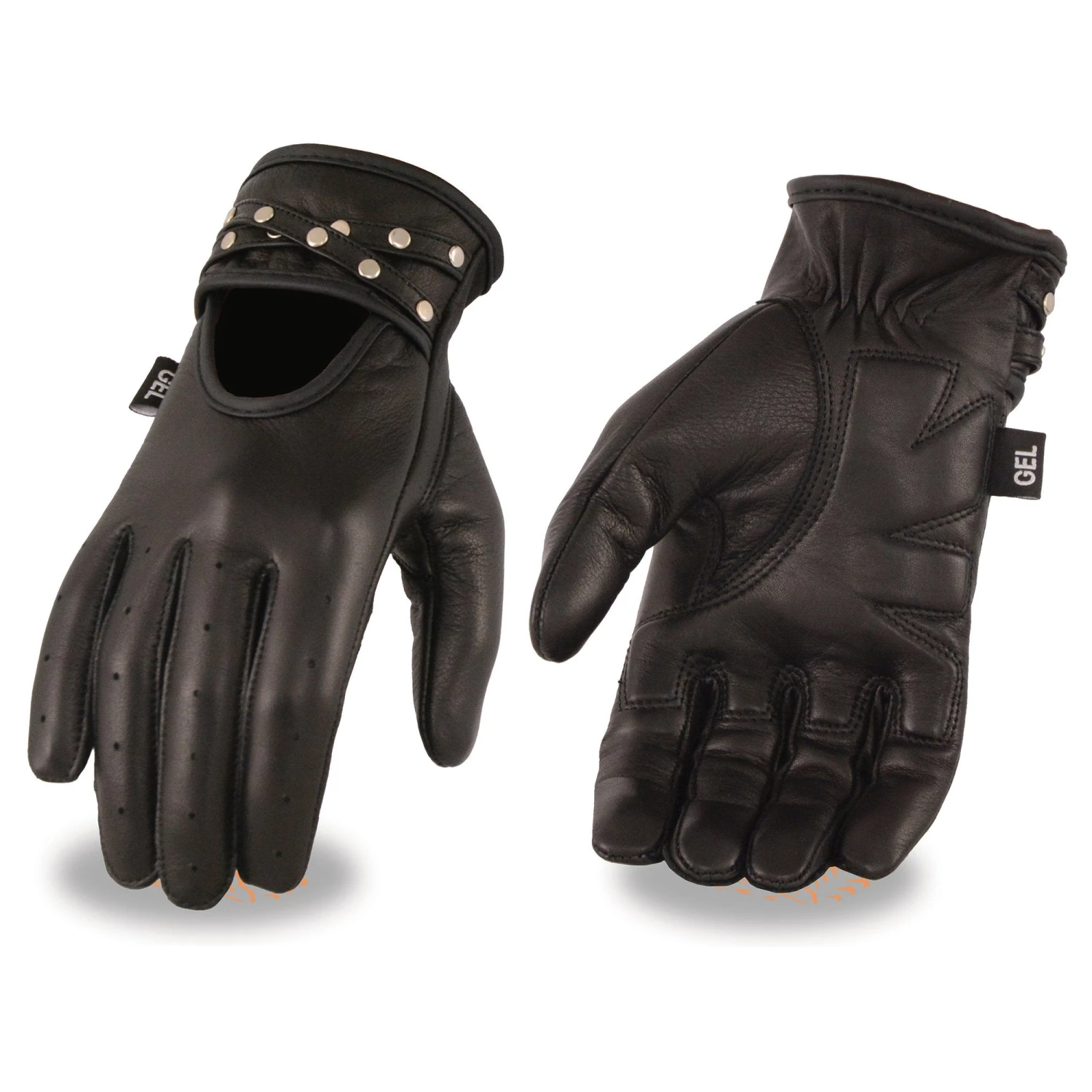 Milwaukee Leather MG7765 Ladies Black Leather Driving Gloves with Gel Palms