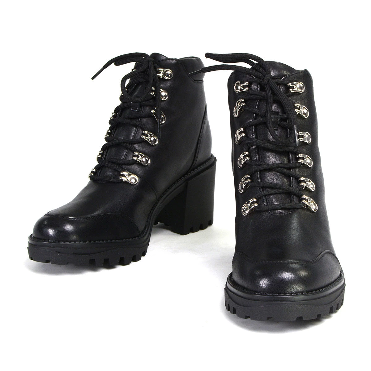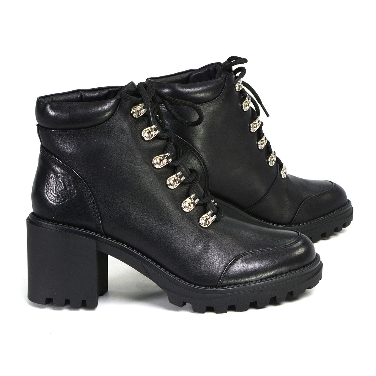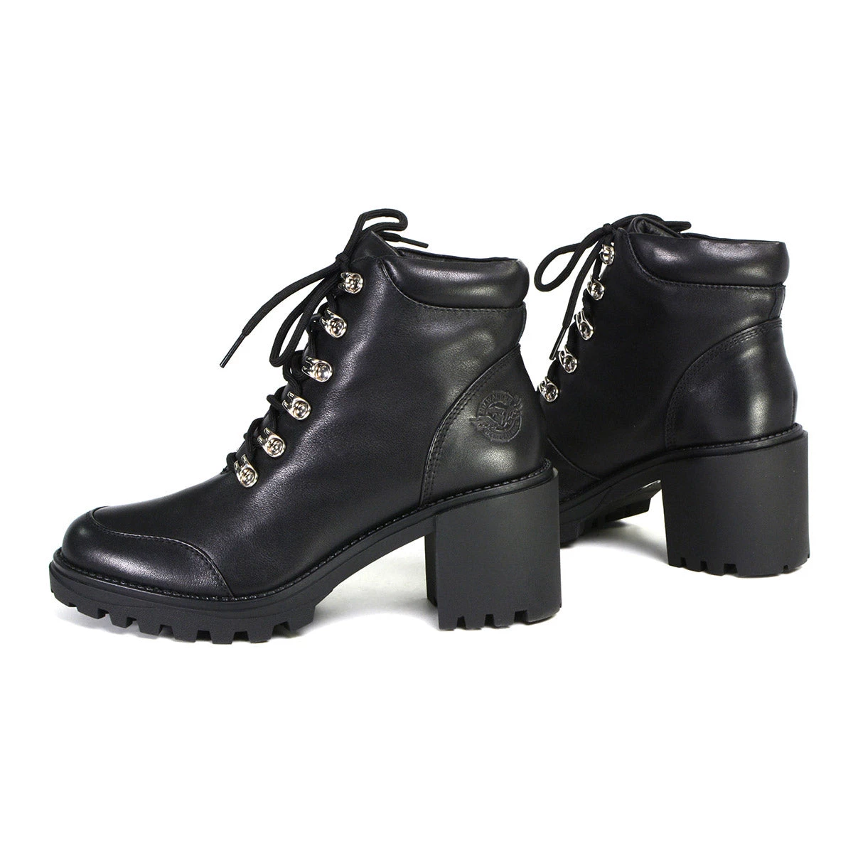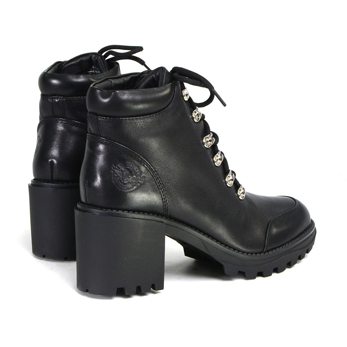 Milwaukee Performance Leather MBL9439 Women’s ‘Devine’ Black Leather Lace to Toe Boots with Platform Heel