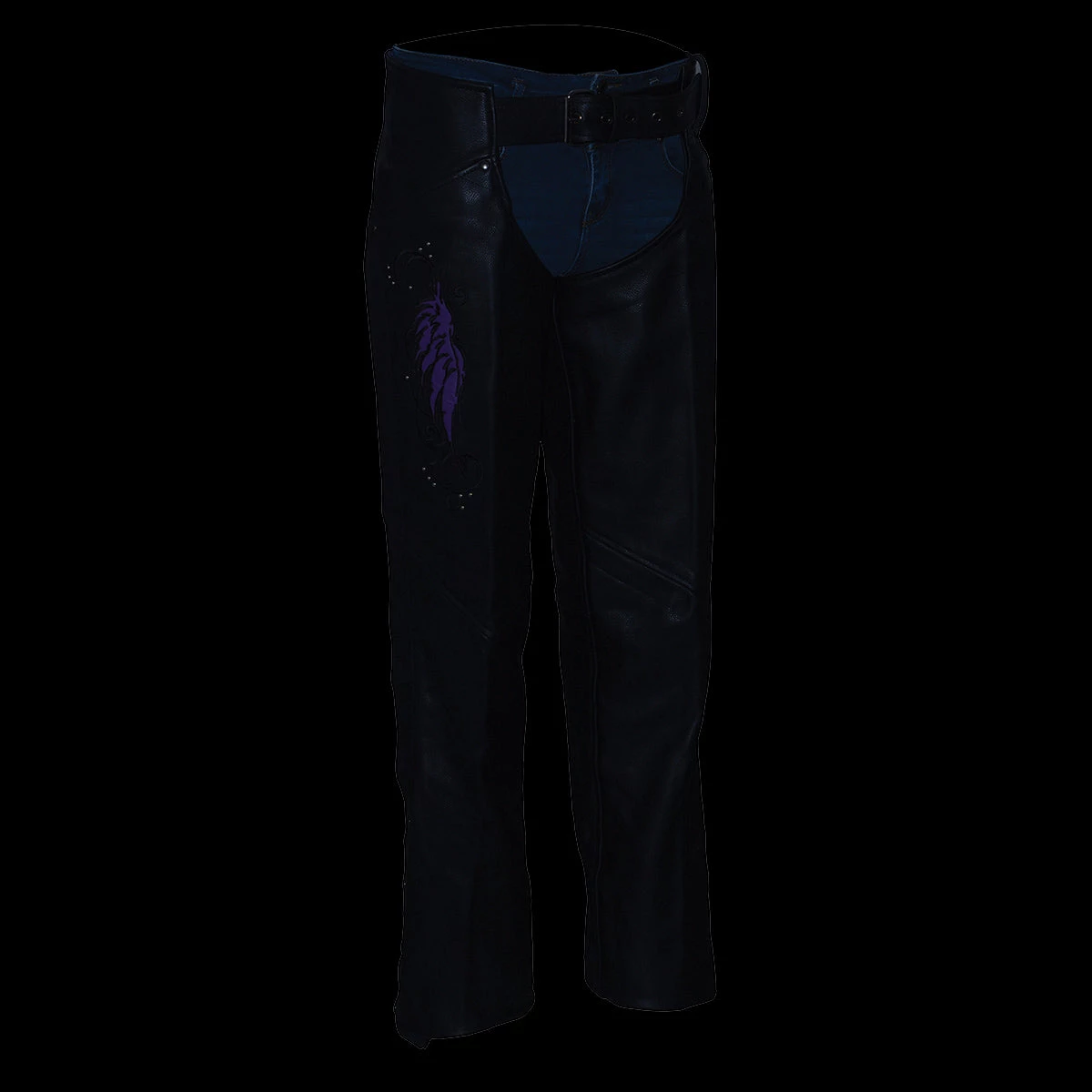 Milwaukee Leather ML1179 Ladies Black Chaps with Wing Embroidery And Rivet Detailing