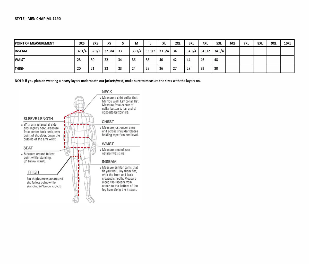 | Sizes | 3X-Small, 2X-Small, X-Small, Small, Medium, Large, X-Large, 2X-Large, 3X-Large, 4X-Large, 5X-Large |