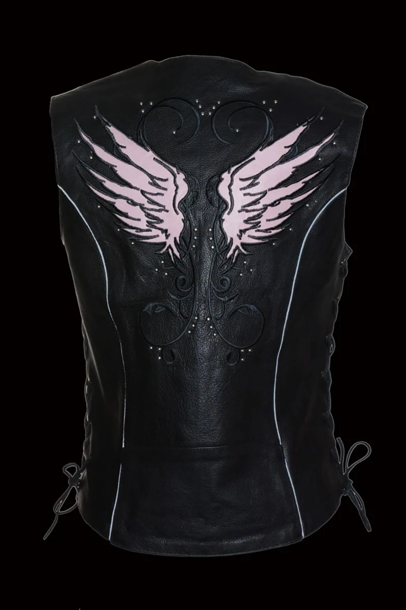 Milwaukee Leather ML1293 Women’s Black and Pink ‘Wing Studded’ Leather Vest
