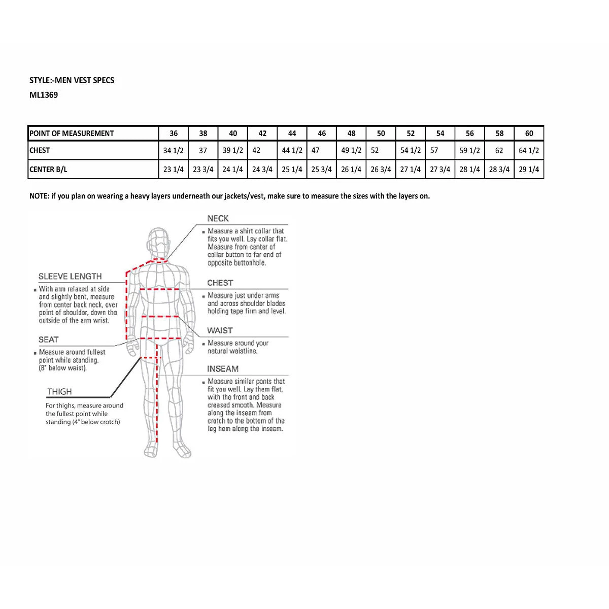 | Sizes | 36, 38, 40, 42, 44, 46, 48, 50, 52, 54, 56, 58, 60 |