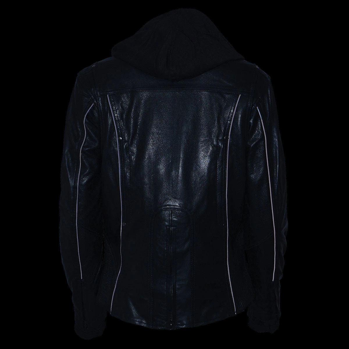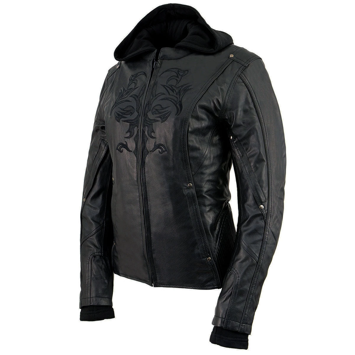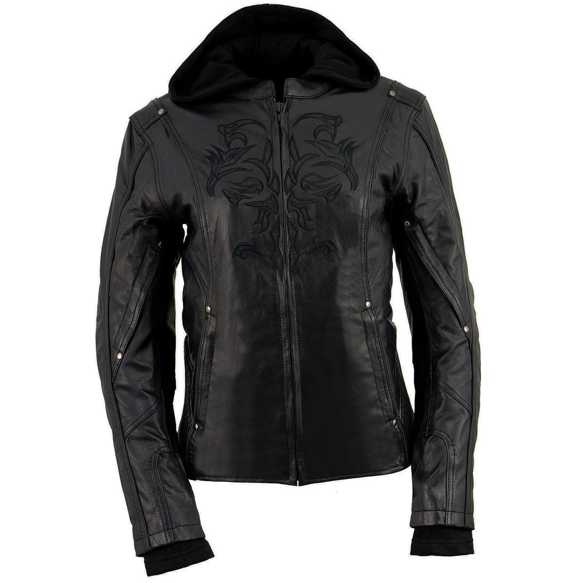 Milwaukee Leather ML2066 Women’s 3/4 Black Leather Hoodie Jacket with Reflective Tribal Design