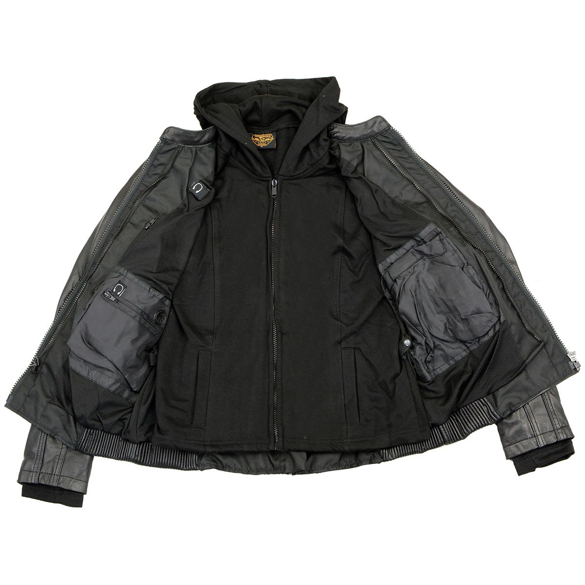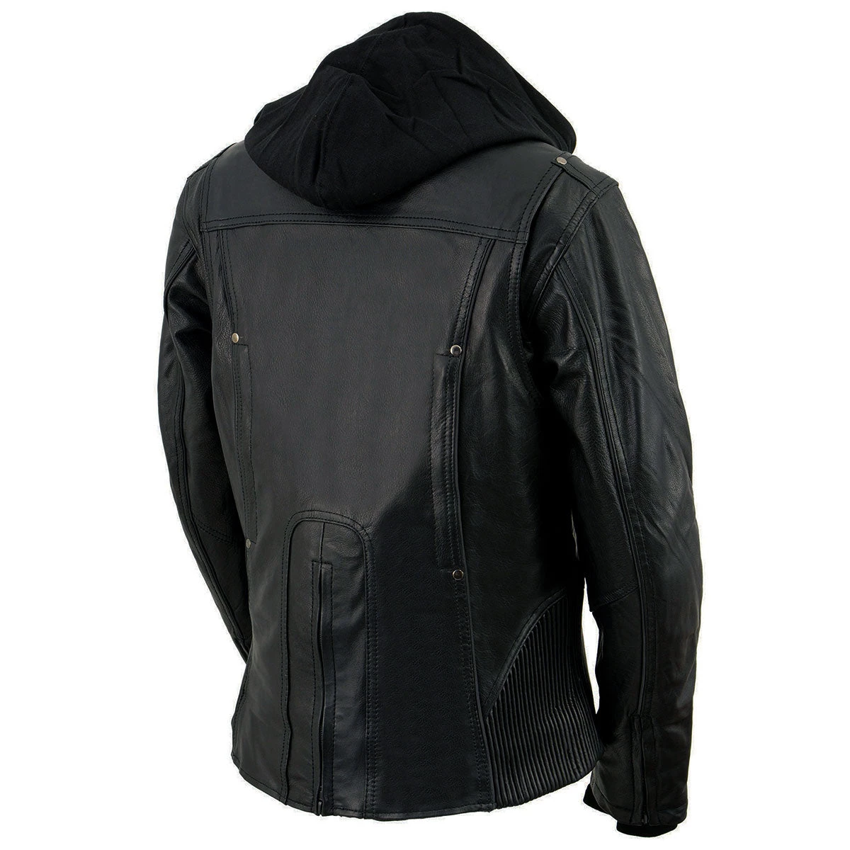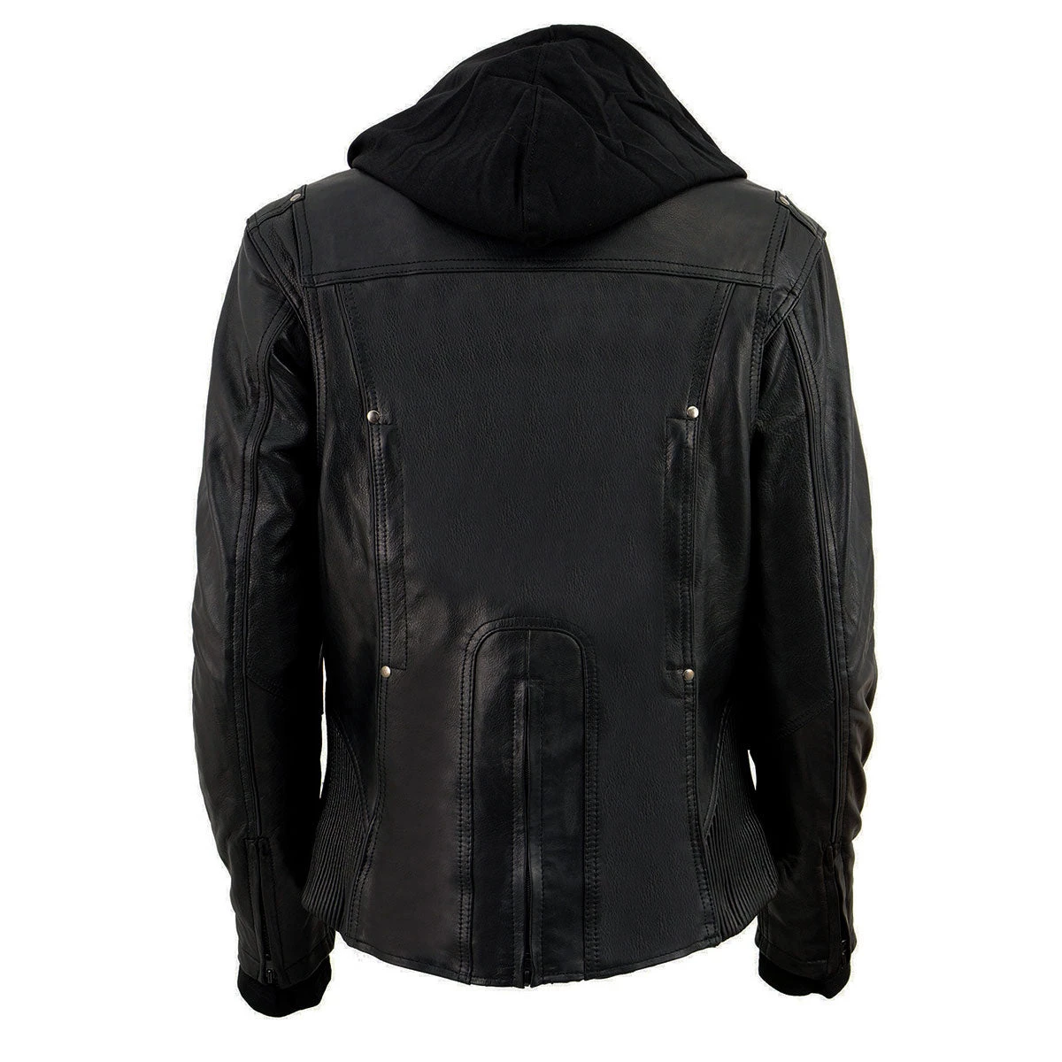 Milwaukee Leather ML2066 Women’s 3/4 Black Leather Hoodie Jacket with Reflective Tribal Design