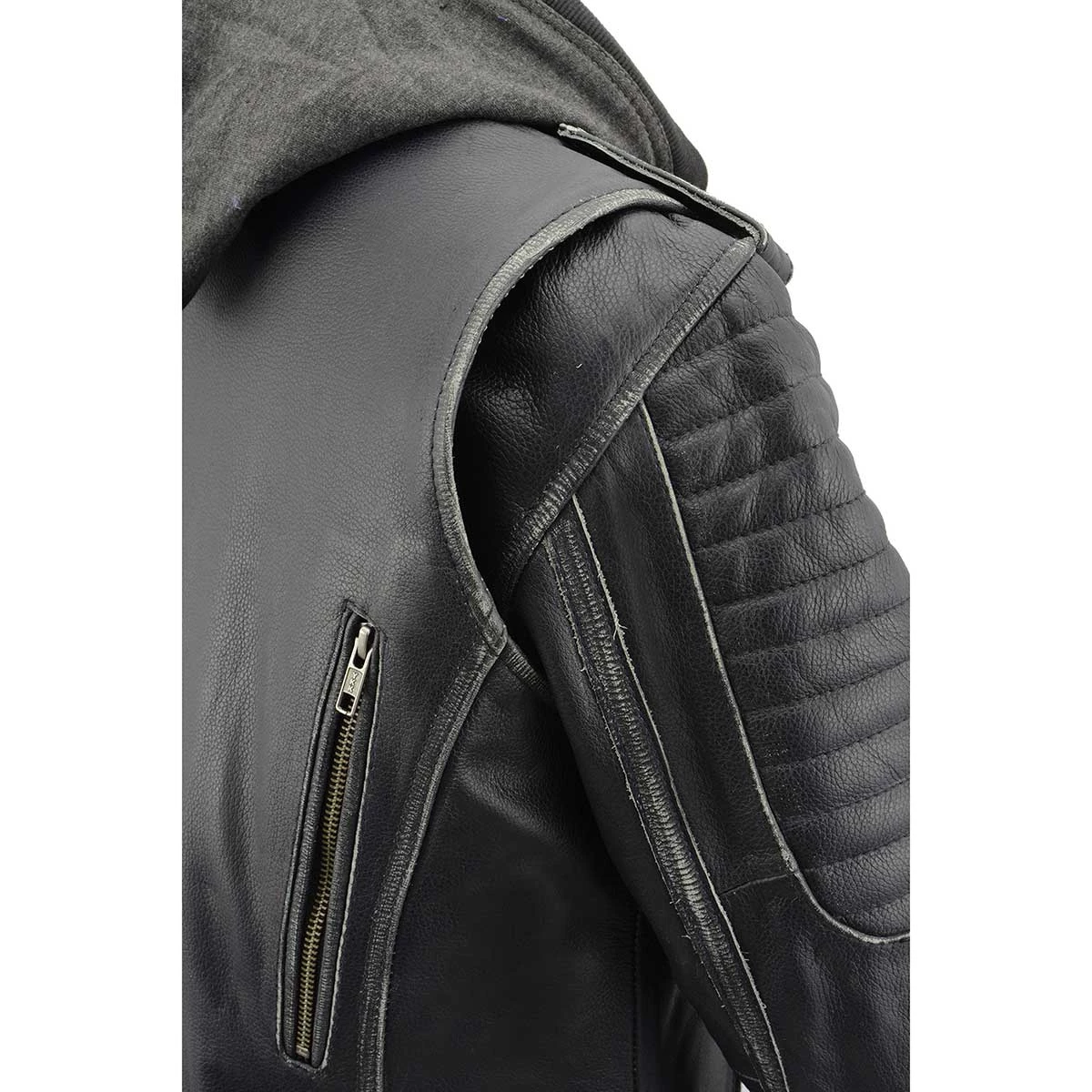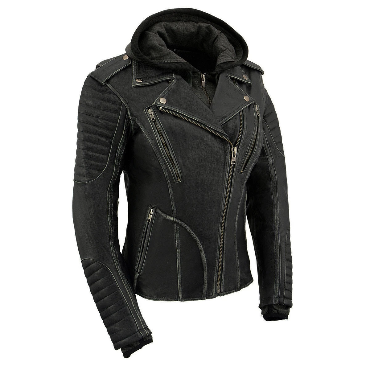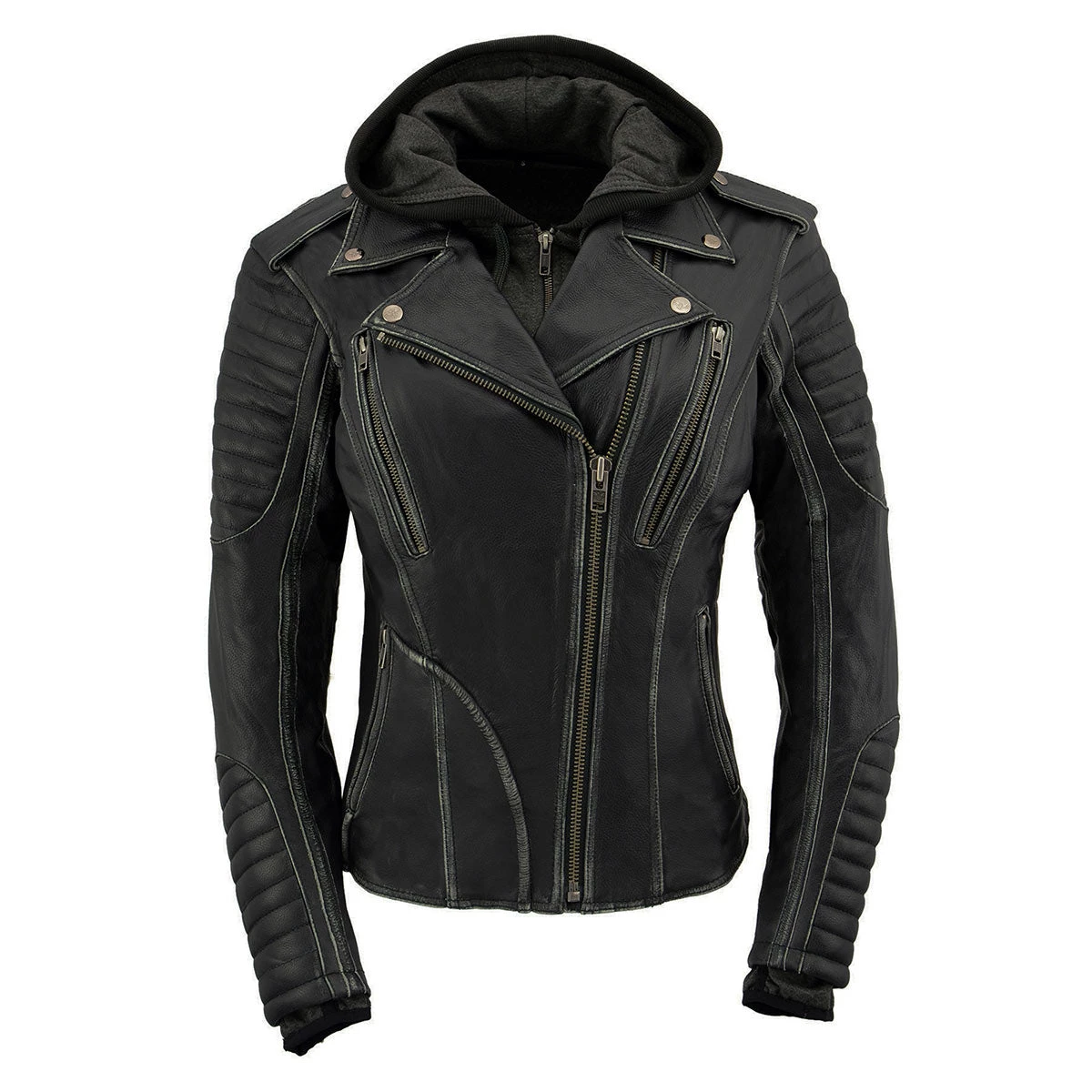 Milwaukee Leather MLL2516 Women’s Black Leather Rub off Jacket with Hoodie Jacket