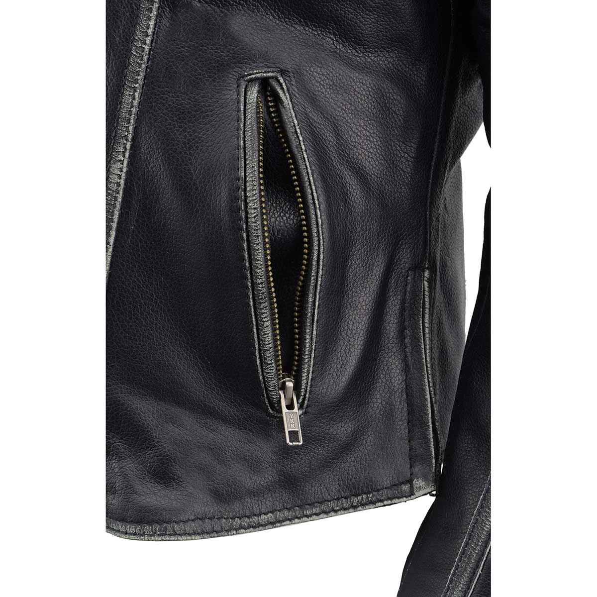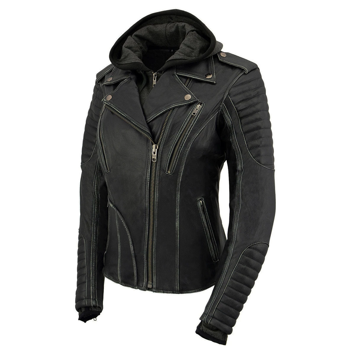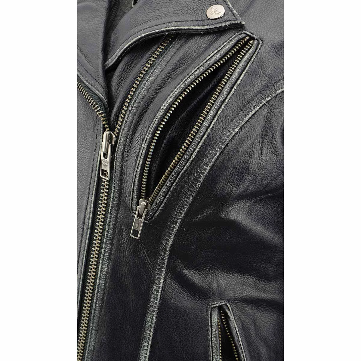 Milwaukee Leather MLL2516 Women’s Black Leather Rub off Jacket with Hoodie Jacket