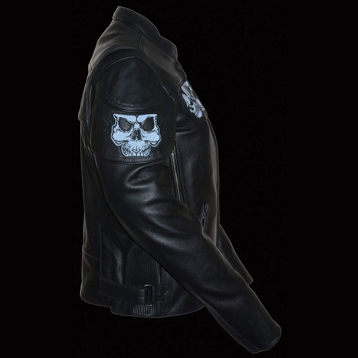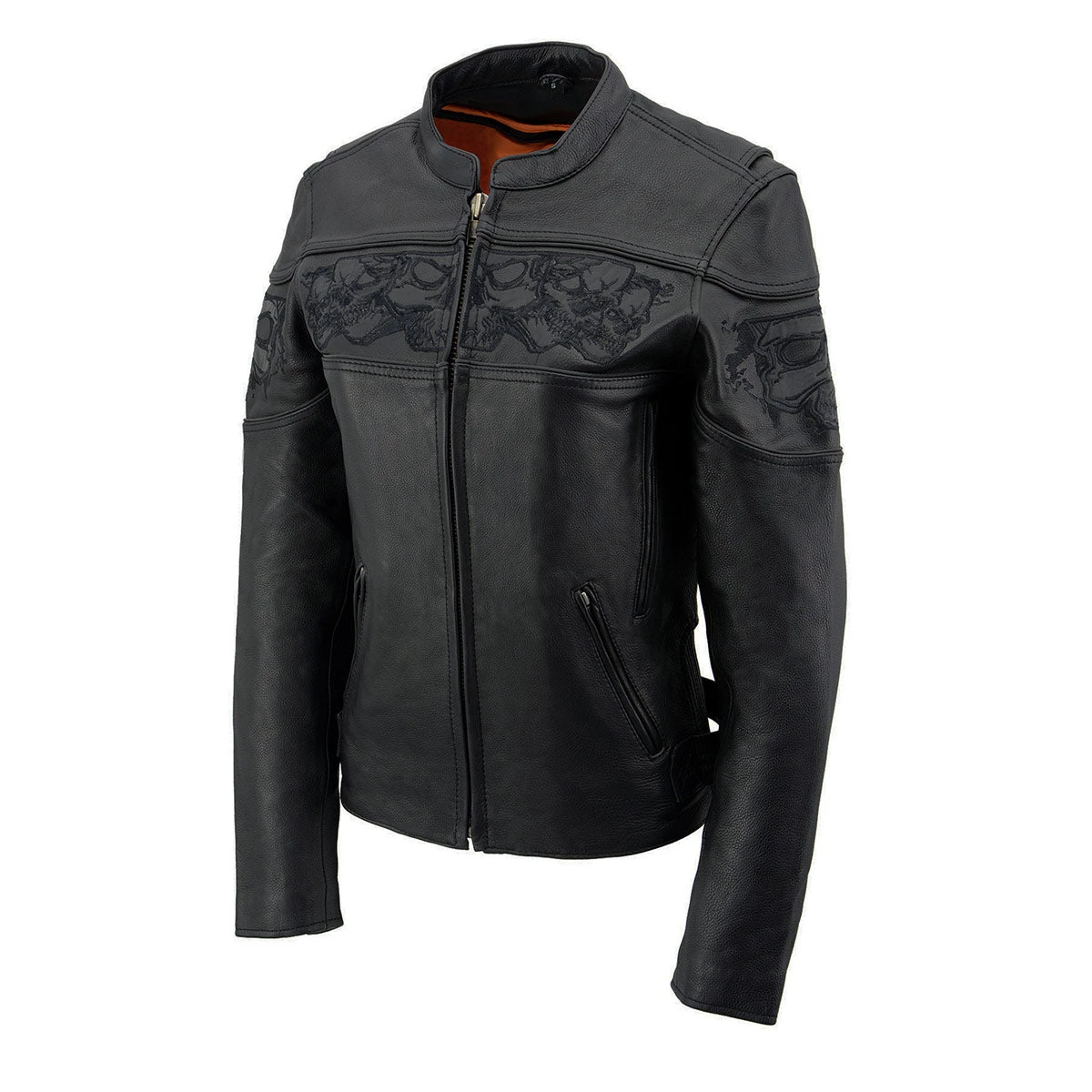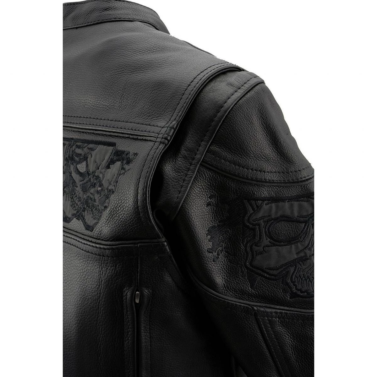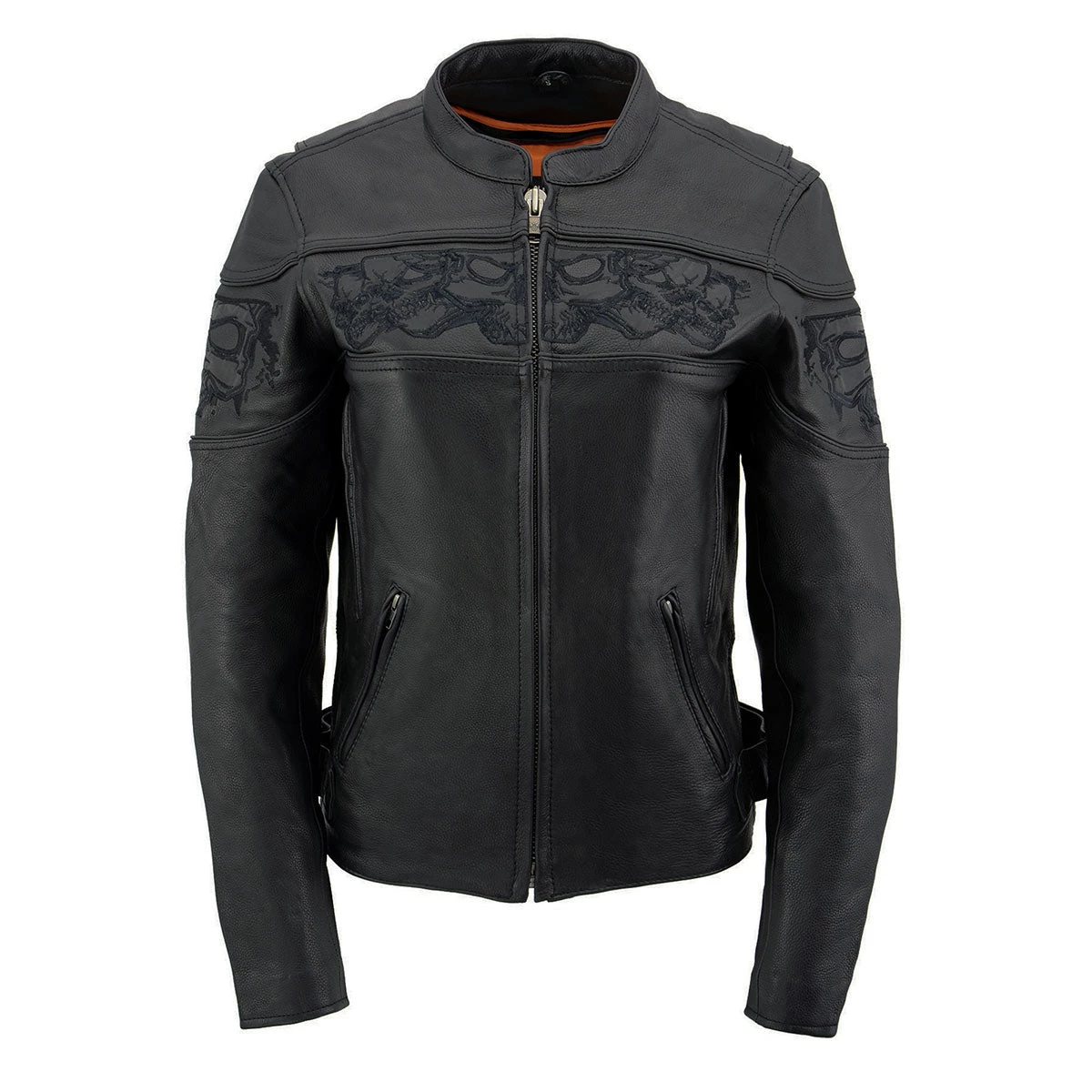 MMilwaukee Leather MLL2540Â Womens Crossover Black Leather Scooter Jacket Reflective Skull Graphic