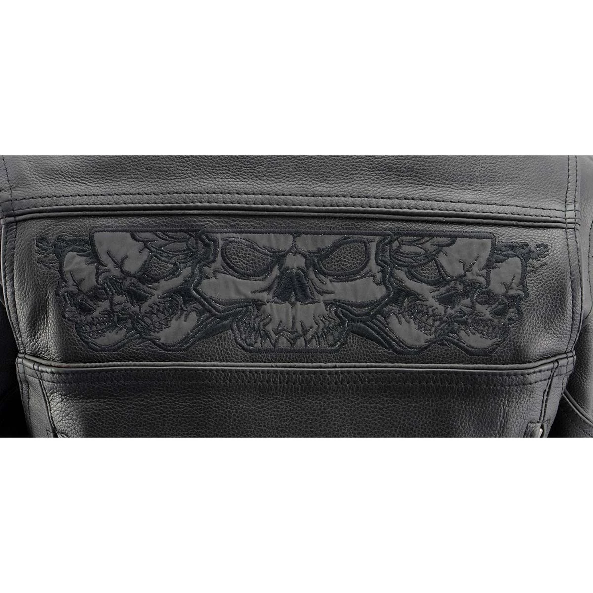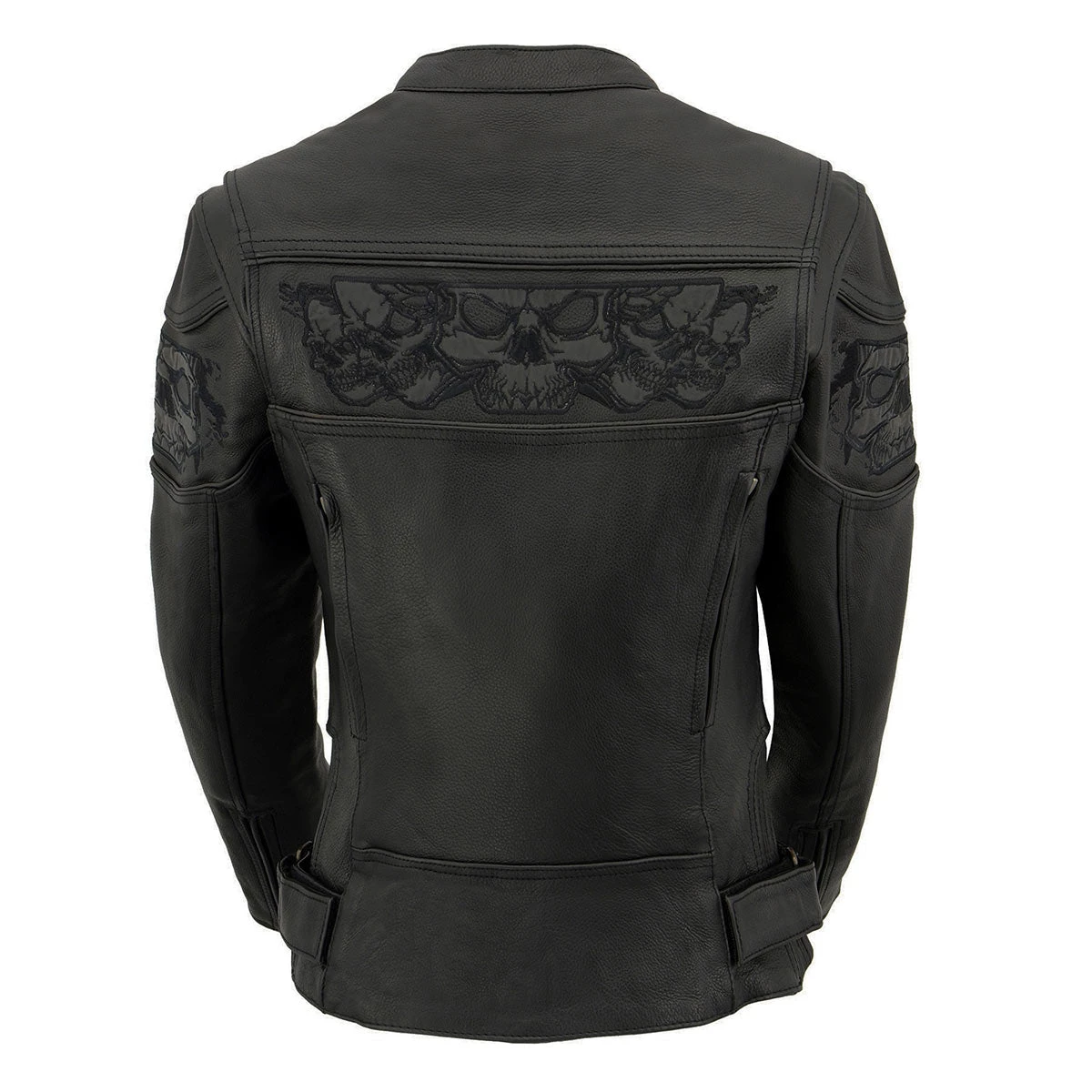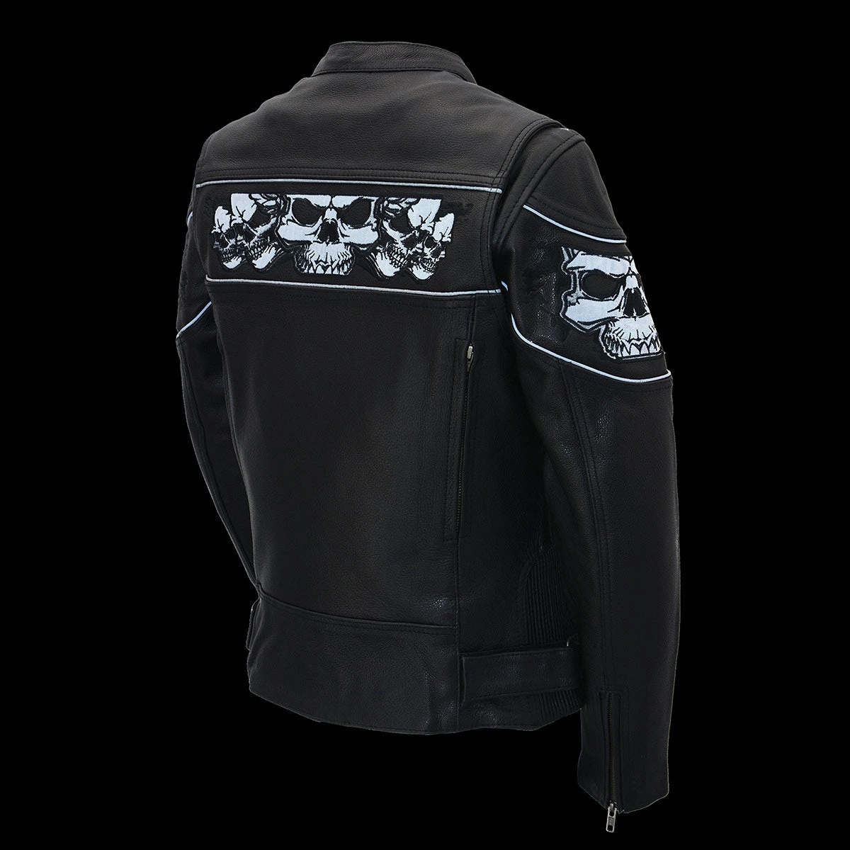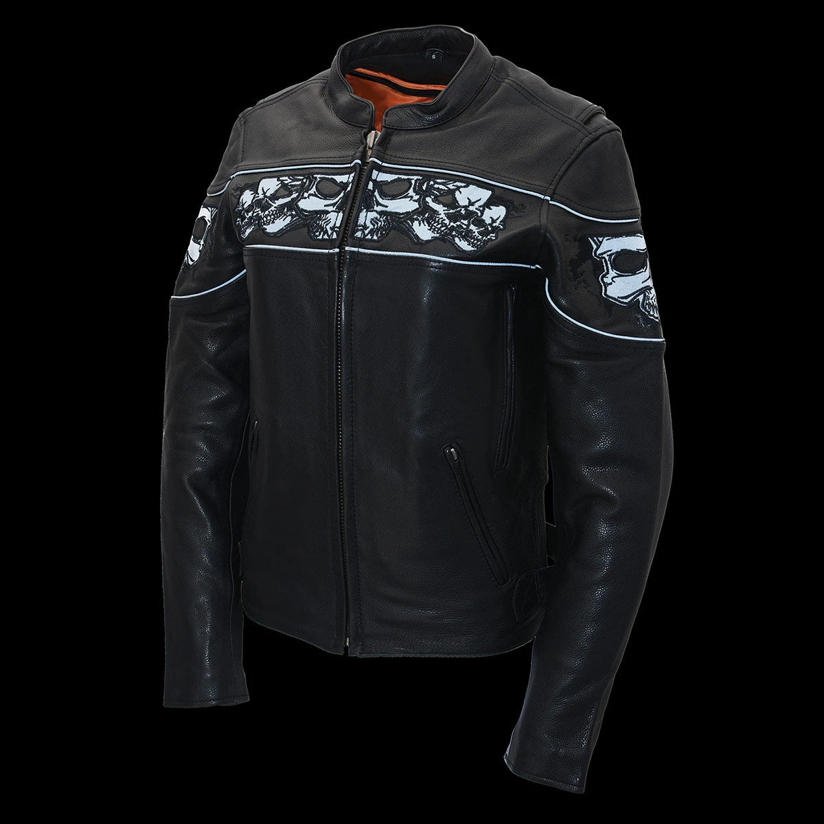 MMilwaukee Leather MLL2540Â Womens Crossover Black Leather Scooter Jacket Reflective Skull Graphic