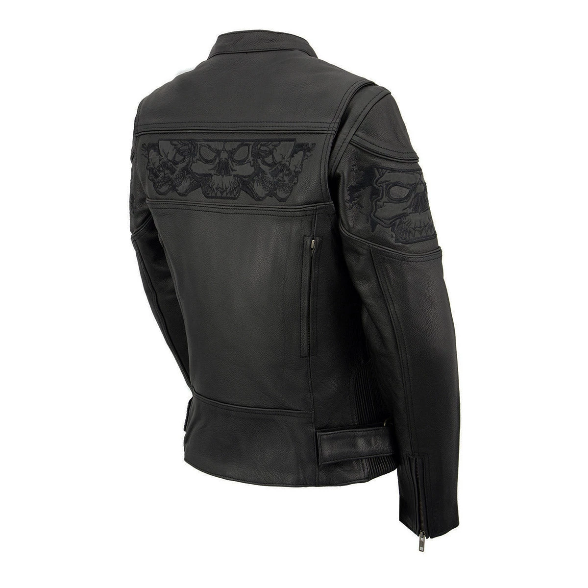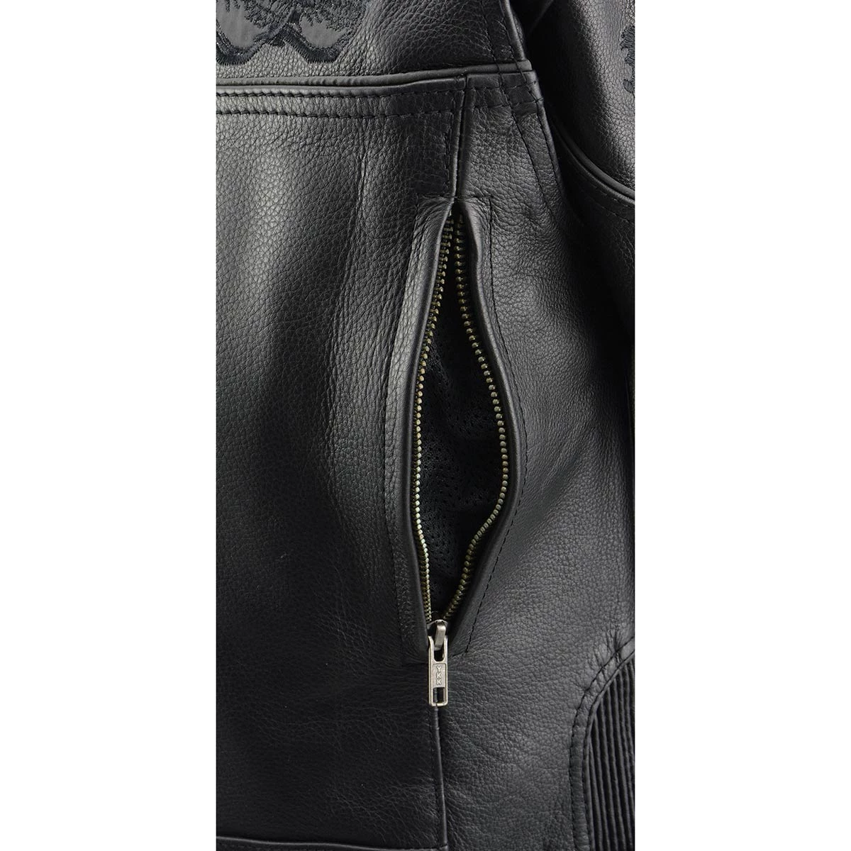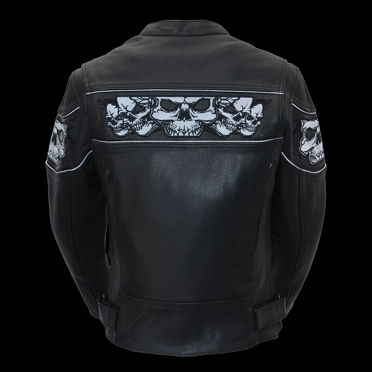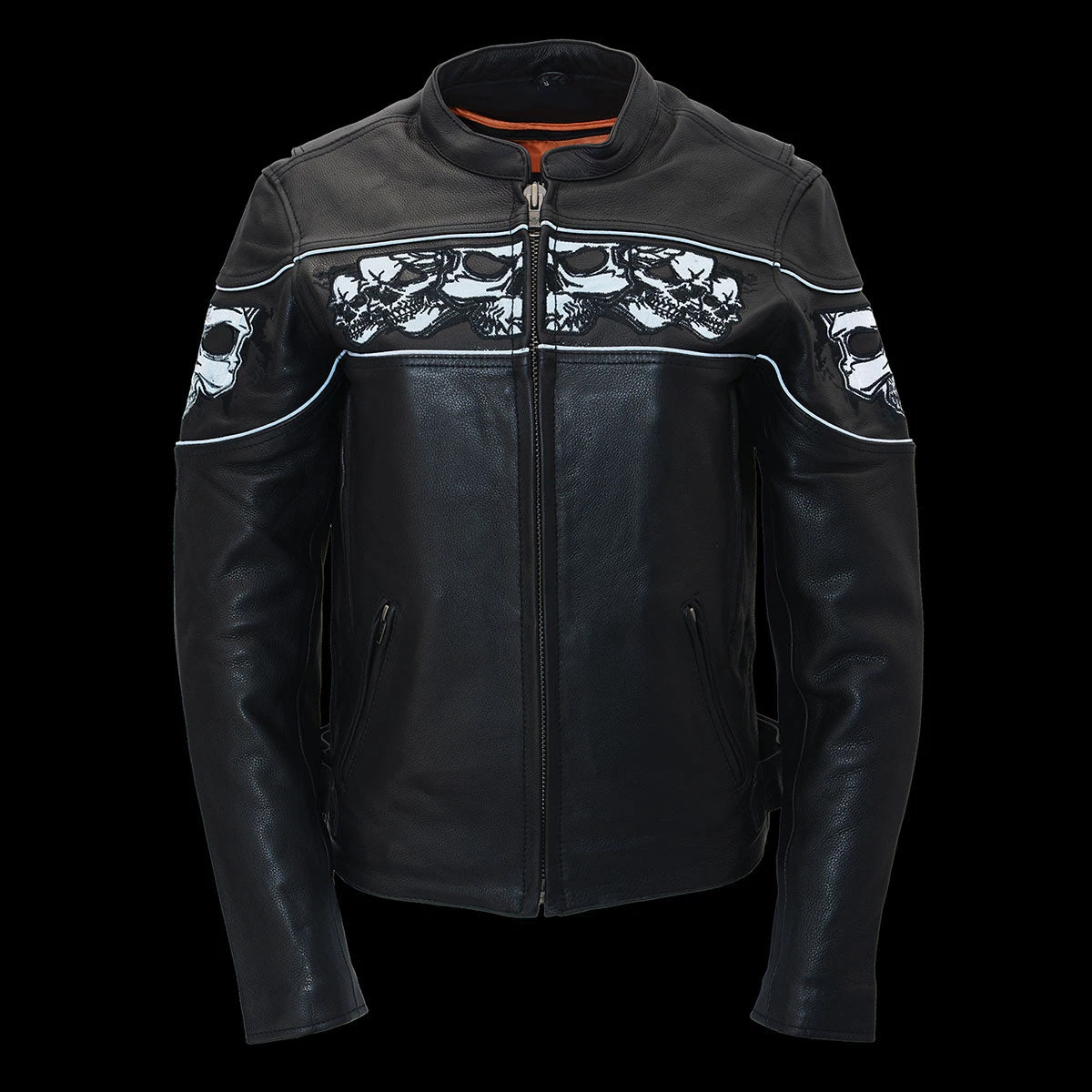 MMilwaukee Leather MLL2540Â Womens Crossover Black Leather Scooter Jacket Reflective Skull Graphic