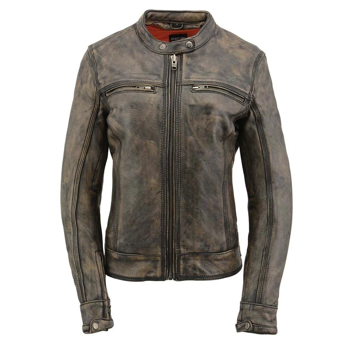 Milwaukee Leather MLL2550 Ladies ‘Scooter ‘Distressed Brown Leather Vented Jacket