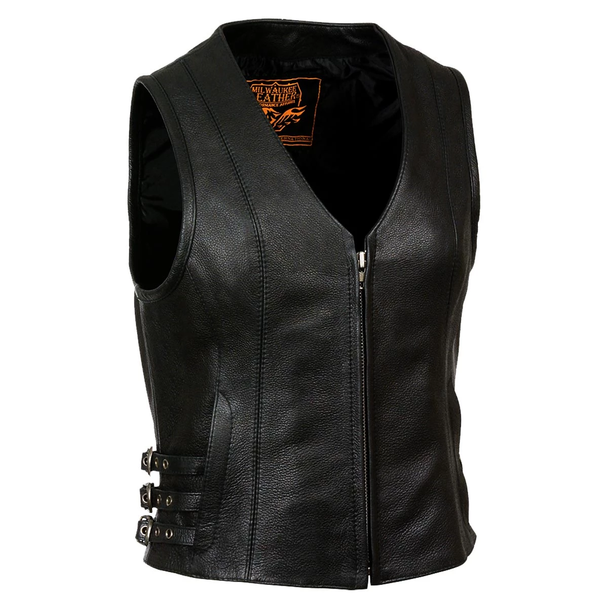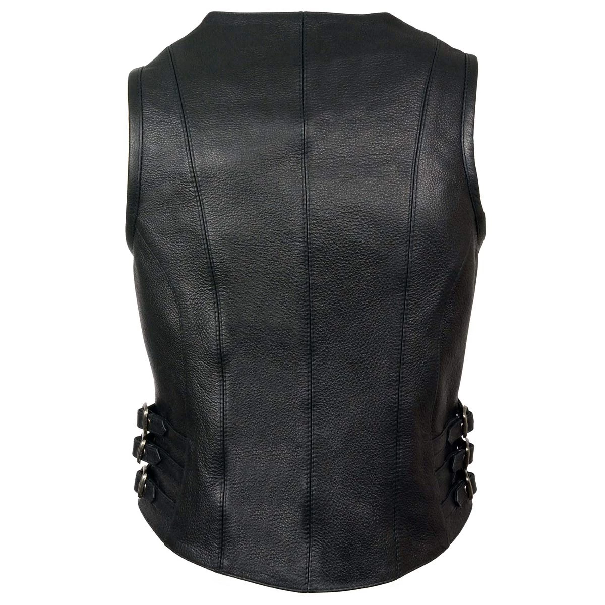 Milwaukee Leather MLL4510 Ladies Black Leather V-Neck Vest with Side Buckles