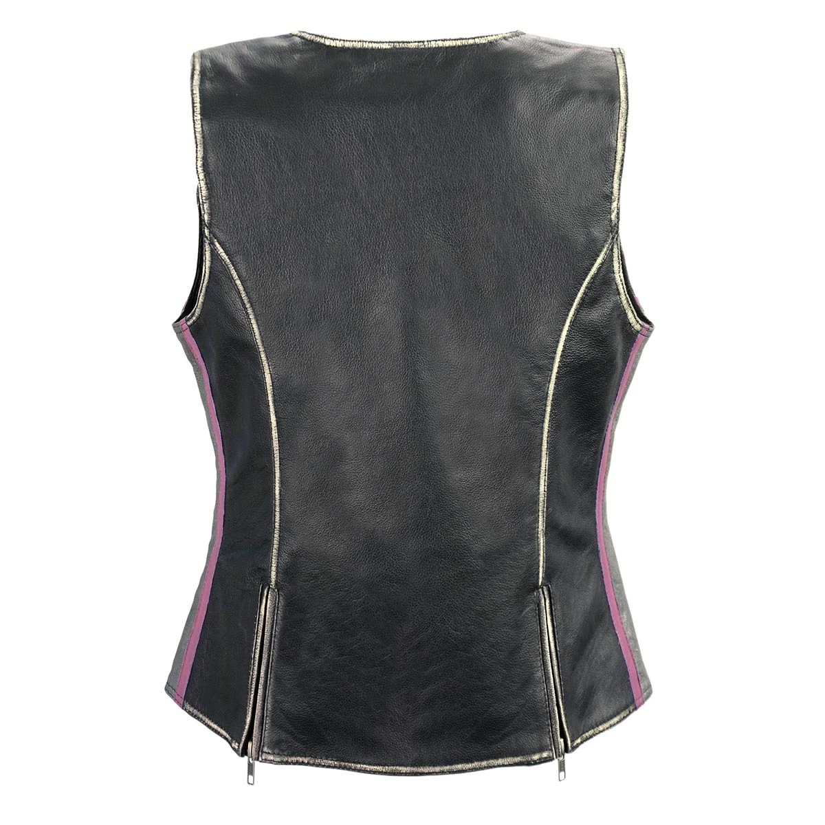 Milwaukee Leather MLL4516 Women’s Rub off Black and Silver Zipper Front Vest