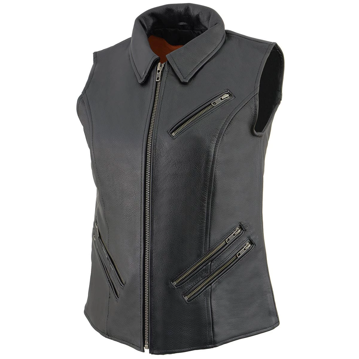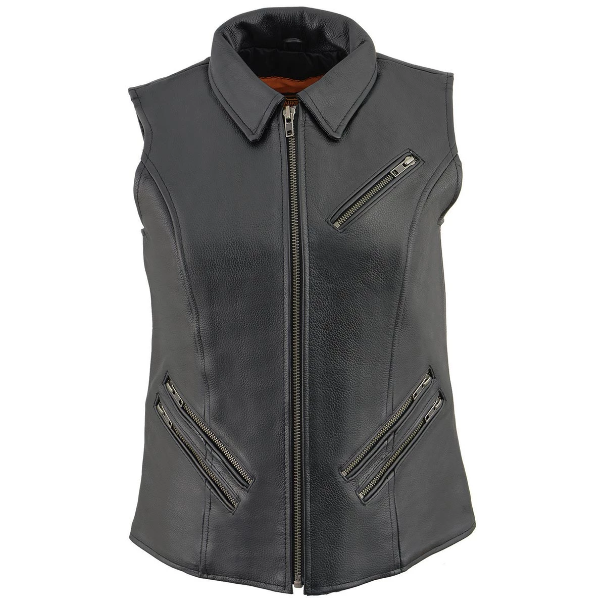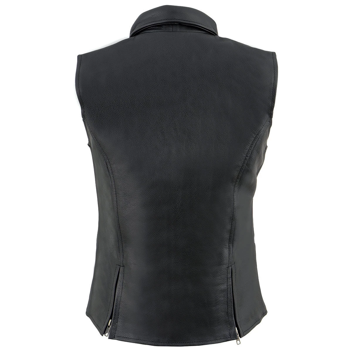 Milwaukee Leather MLL4520 Ladies Black Zipper Front Vest with Shirt Style Collar