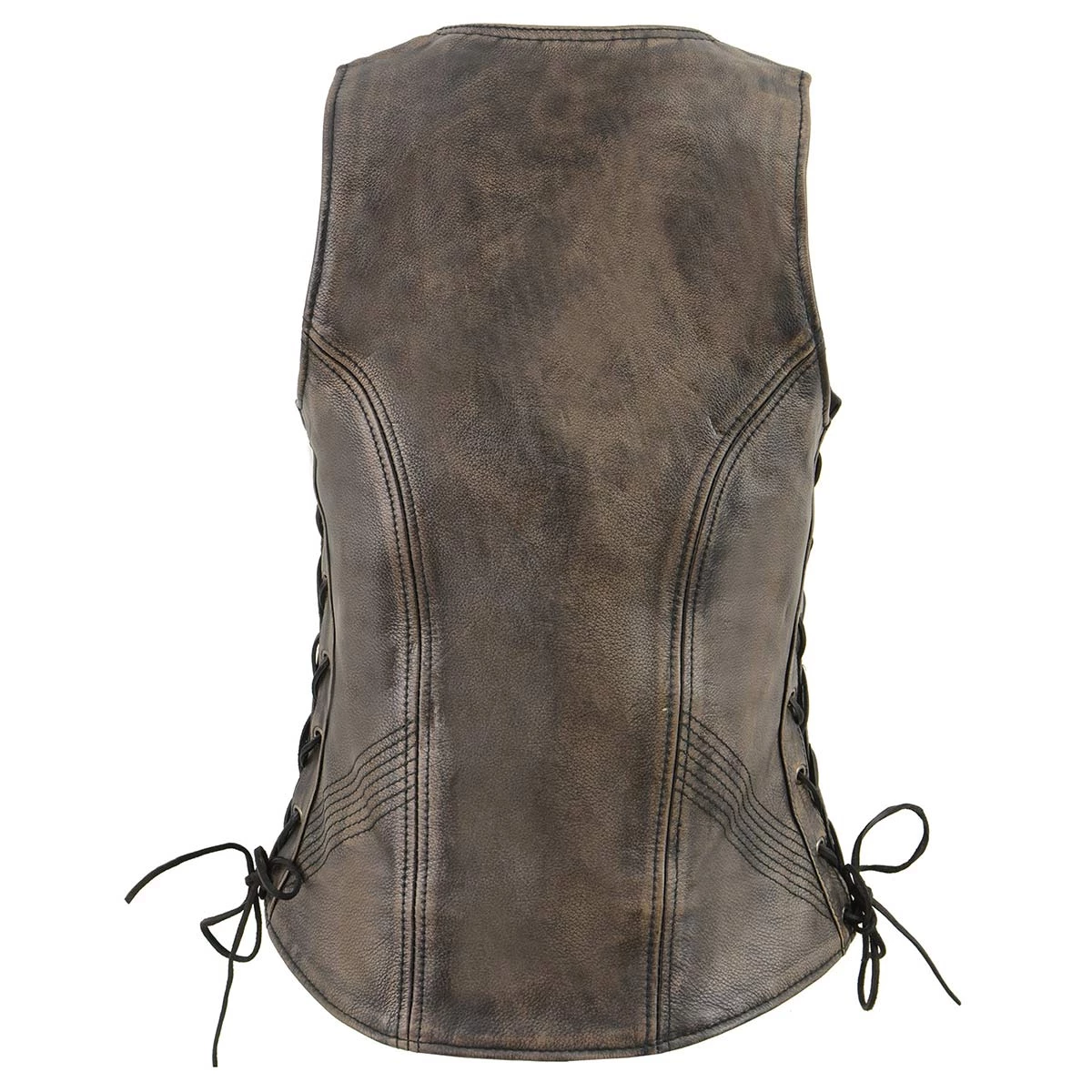 Milwaukee Leather MLL4531 Women’s Distressed Brown ‘Open Neck’ Leather Vest with Side Laces