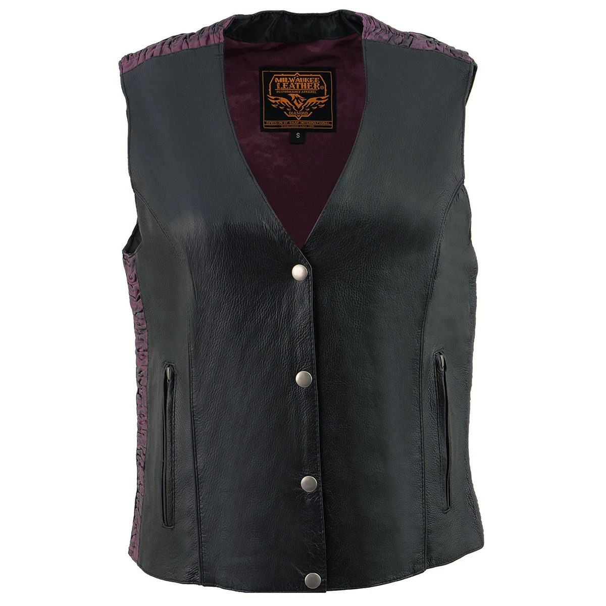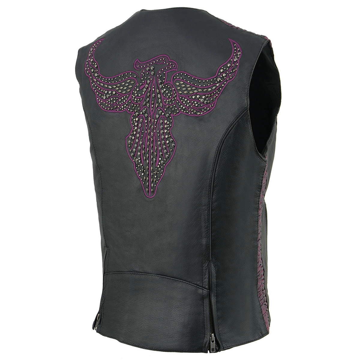 Milwaukee Leather MLL4570 Ladies Black and Purple ‘Studded Phoenix’ Leather Vest with Snap Button Closure