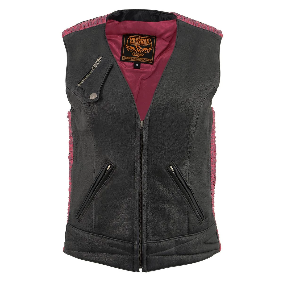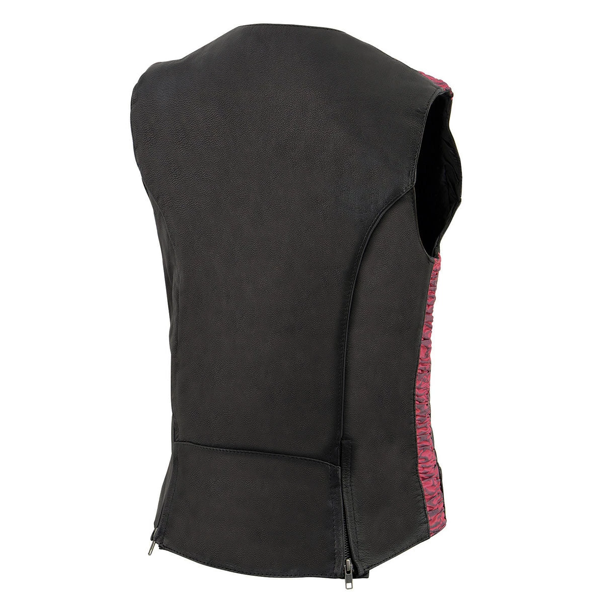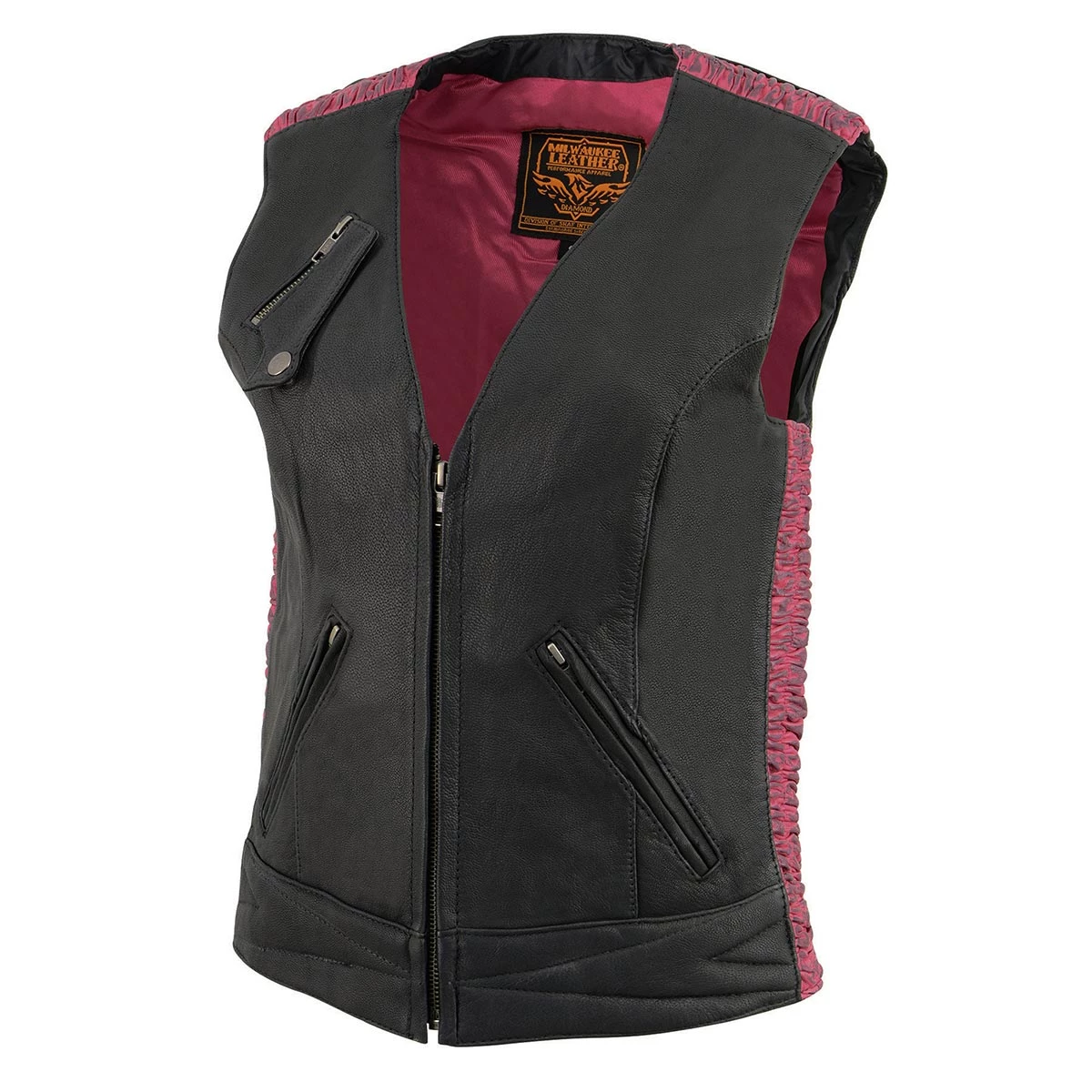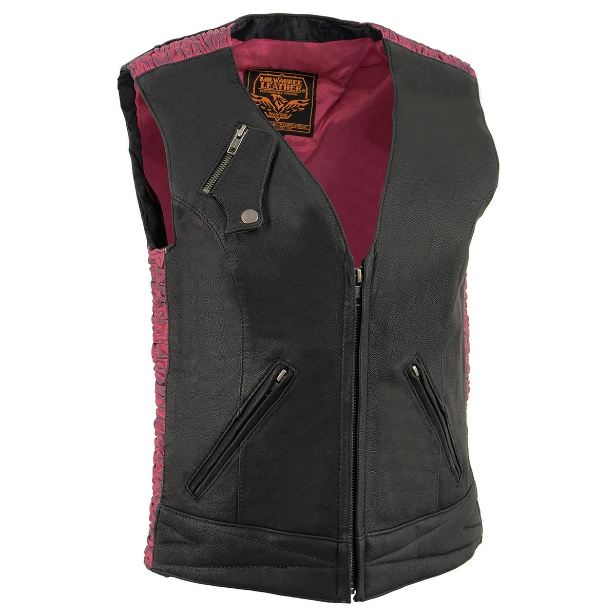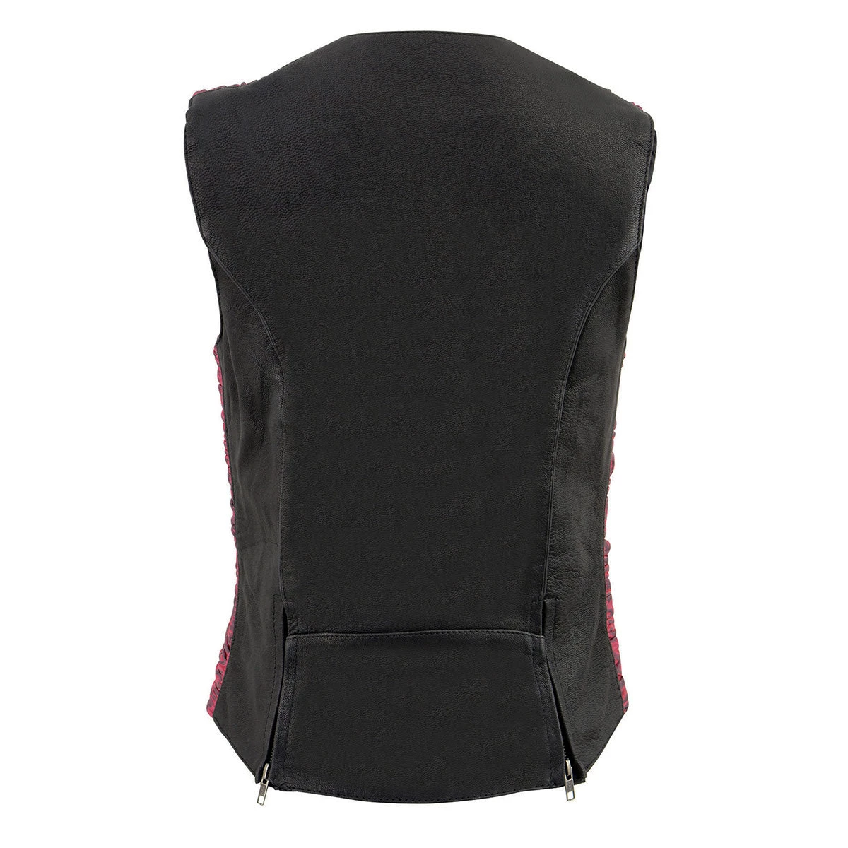 Milwaukee Leather MLL4571 Ladies Black and Pink Lightweight Snap Front Vest with Crinkle Detailing
