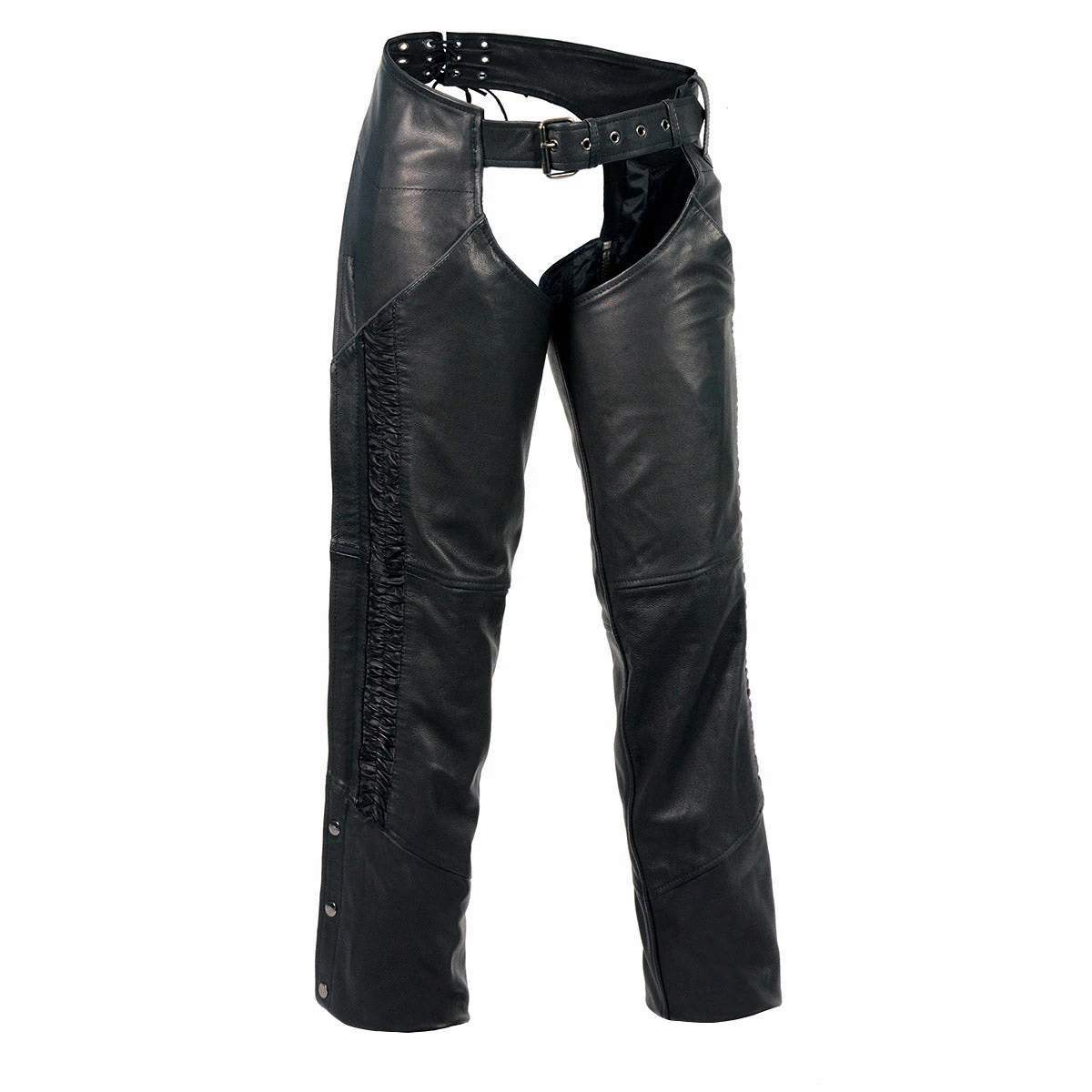 Milwaukee Leather MLL6500 Ladies Black Leather Hip Set Chaps with Crinkled Leg Striping