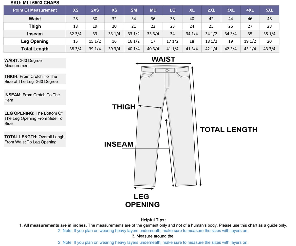 Milwaukee Leather MLL6503 Ladies Black Classic Leather Chaps with Rivet Design