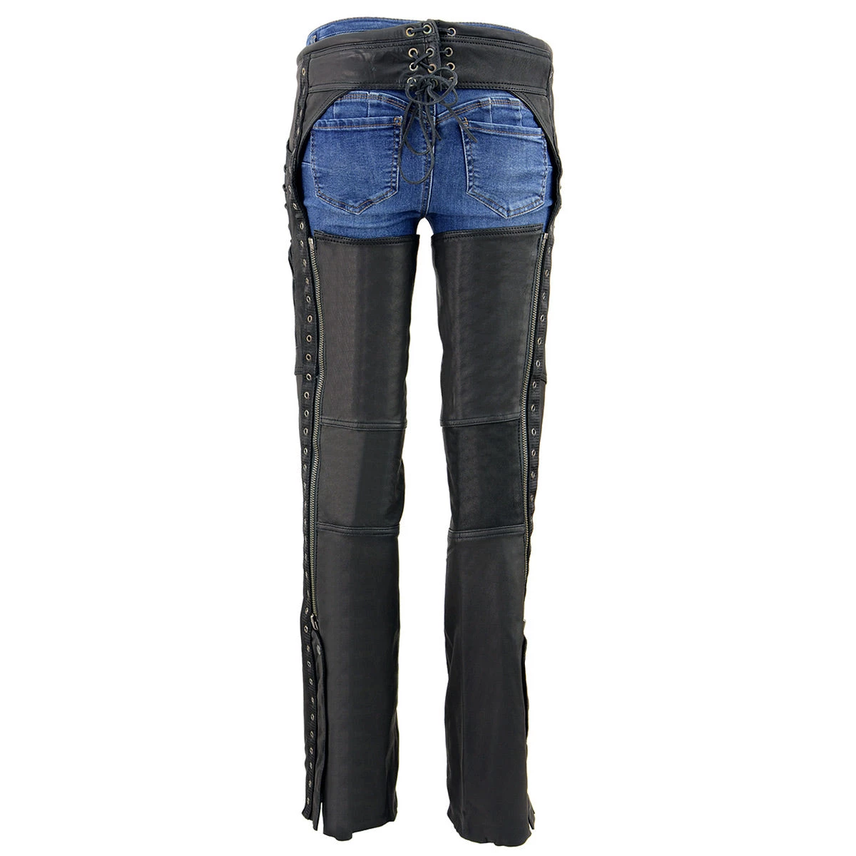 Milwaukee Leather MLL6535 Women’s Black Lightweight Hip Set Chaps with Lace and Grommet Details
