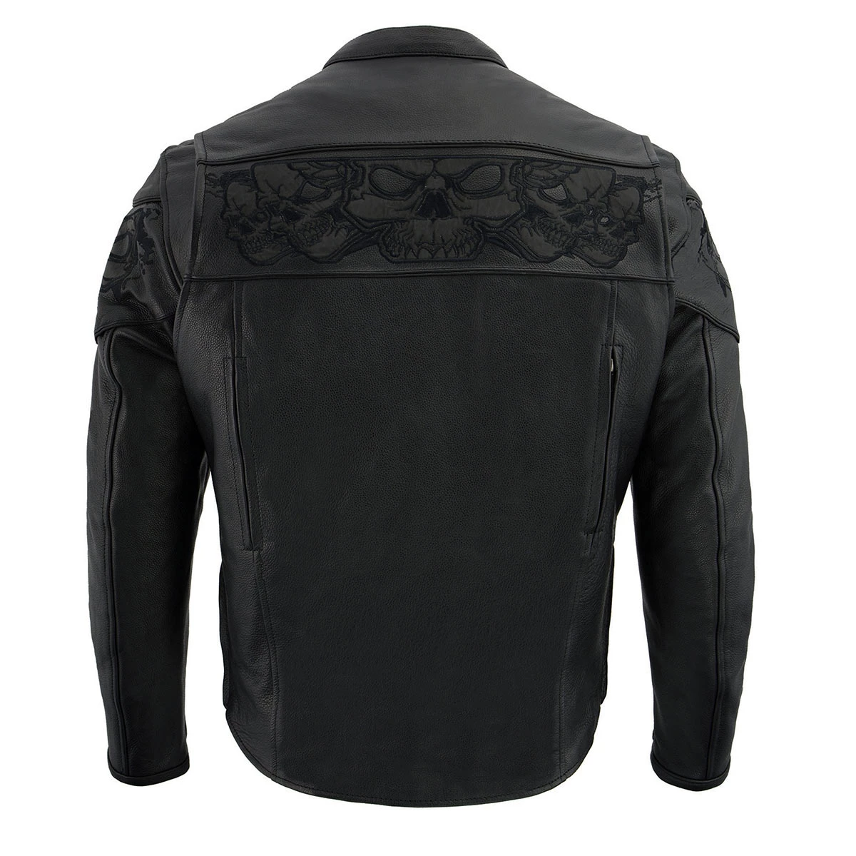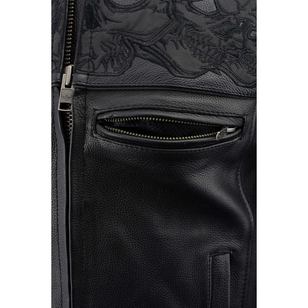 Gain A Friend in Your Closet. This Genuine Leather Cycle Jacket from Milwaukee Leather Is Designed with Unique Embroidery Detail, Reflective Skull Embroidery and Plenty of Venting to Stay Cool During Those Summer Rides. It’s Just What You Need to Pull Together Your Overall Look, And You’ll Look Forward to Wearing It Often. Order Yours Today from Leatherup, The Most Popular Online Motorcycle Store.