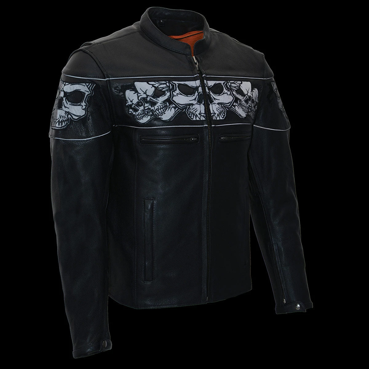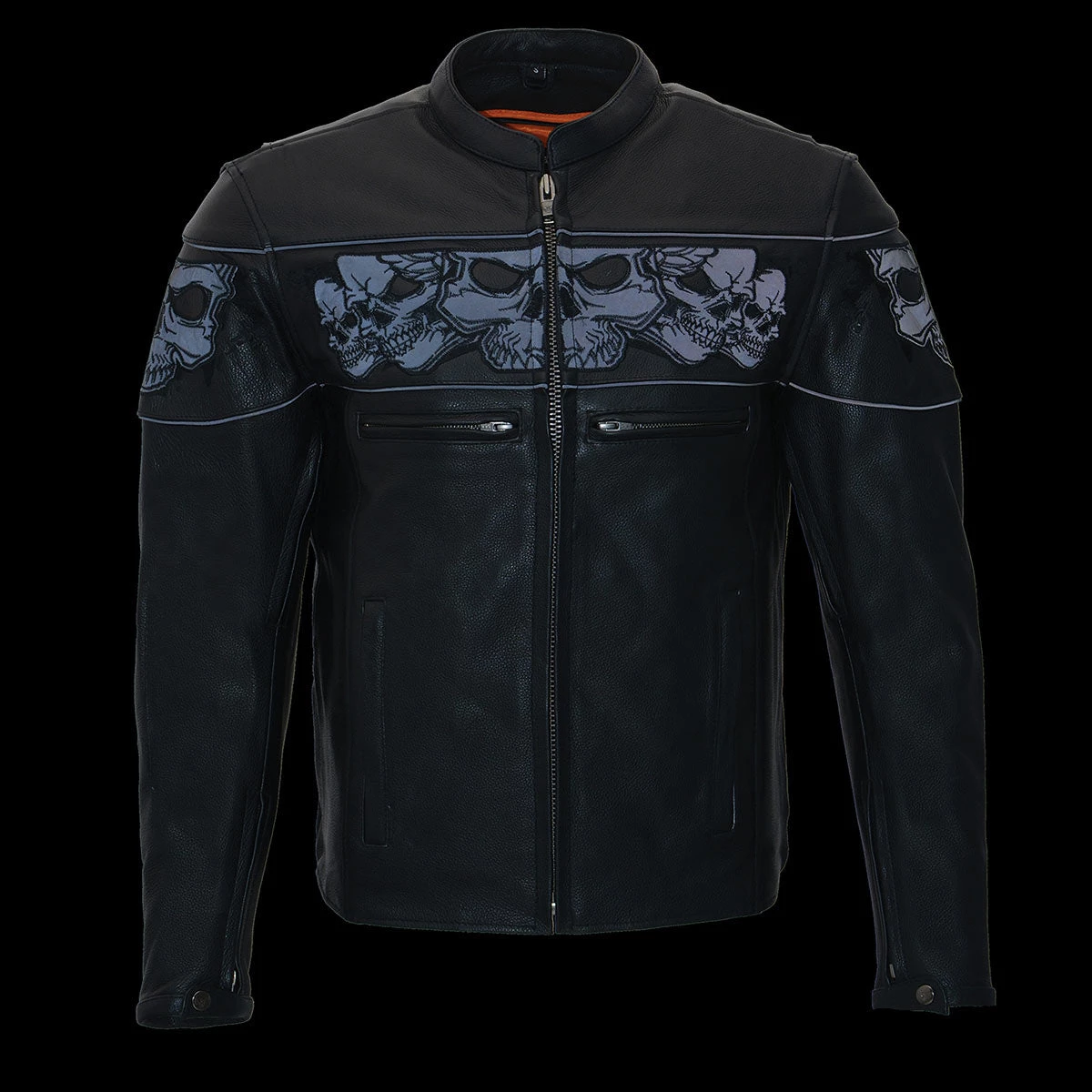 Milwaukee Leather MLM1500 Men’s Crossover Black Leather Scooter Jacket with Reflective Skulls