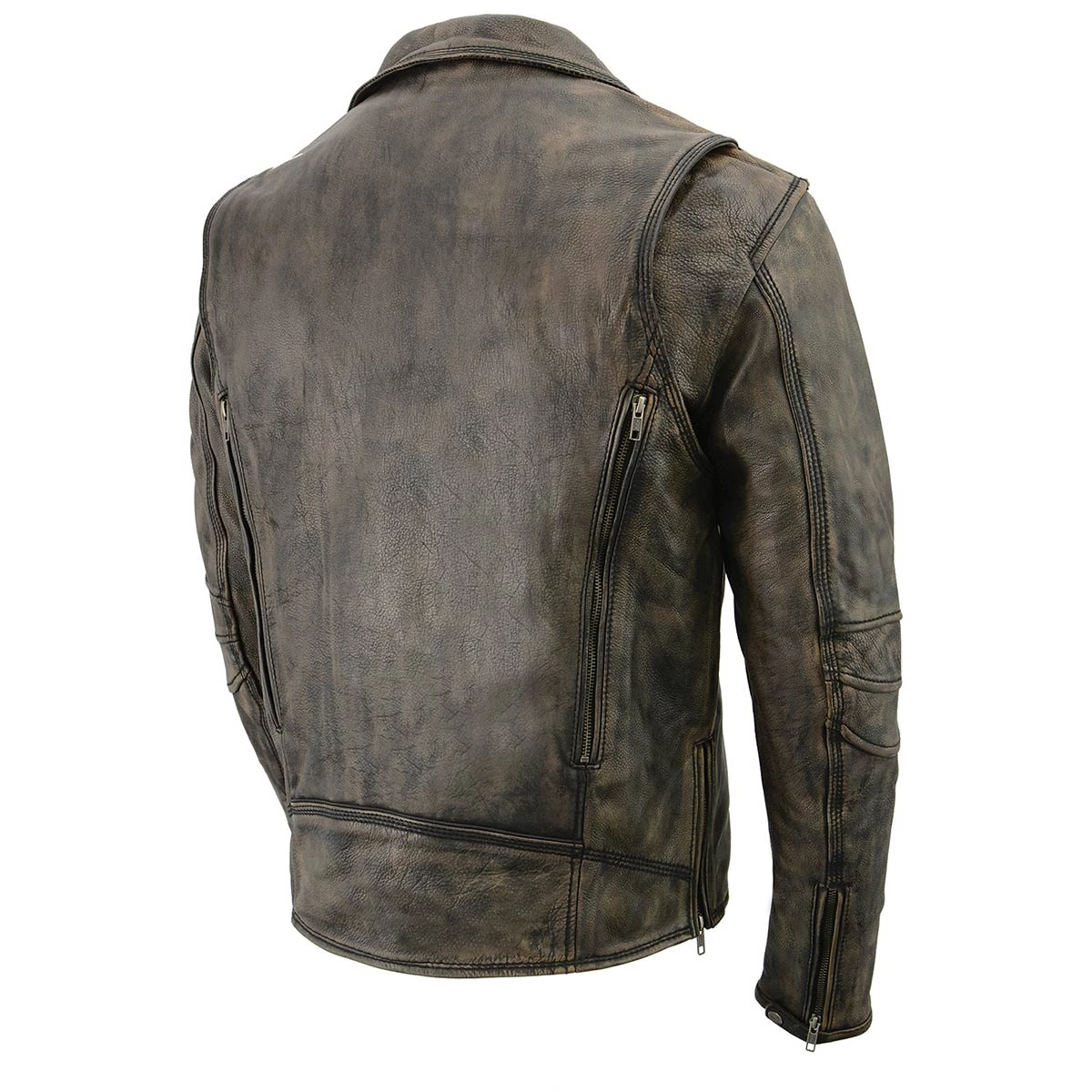 Milwaukee Leather Mens MLM1515 Triple Stitch Beltless Distressed Brown Leather Jacket with Gun Pockets