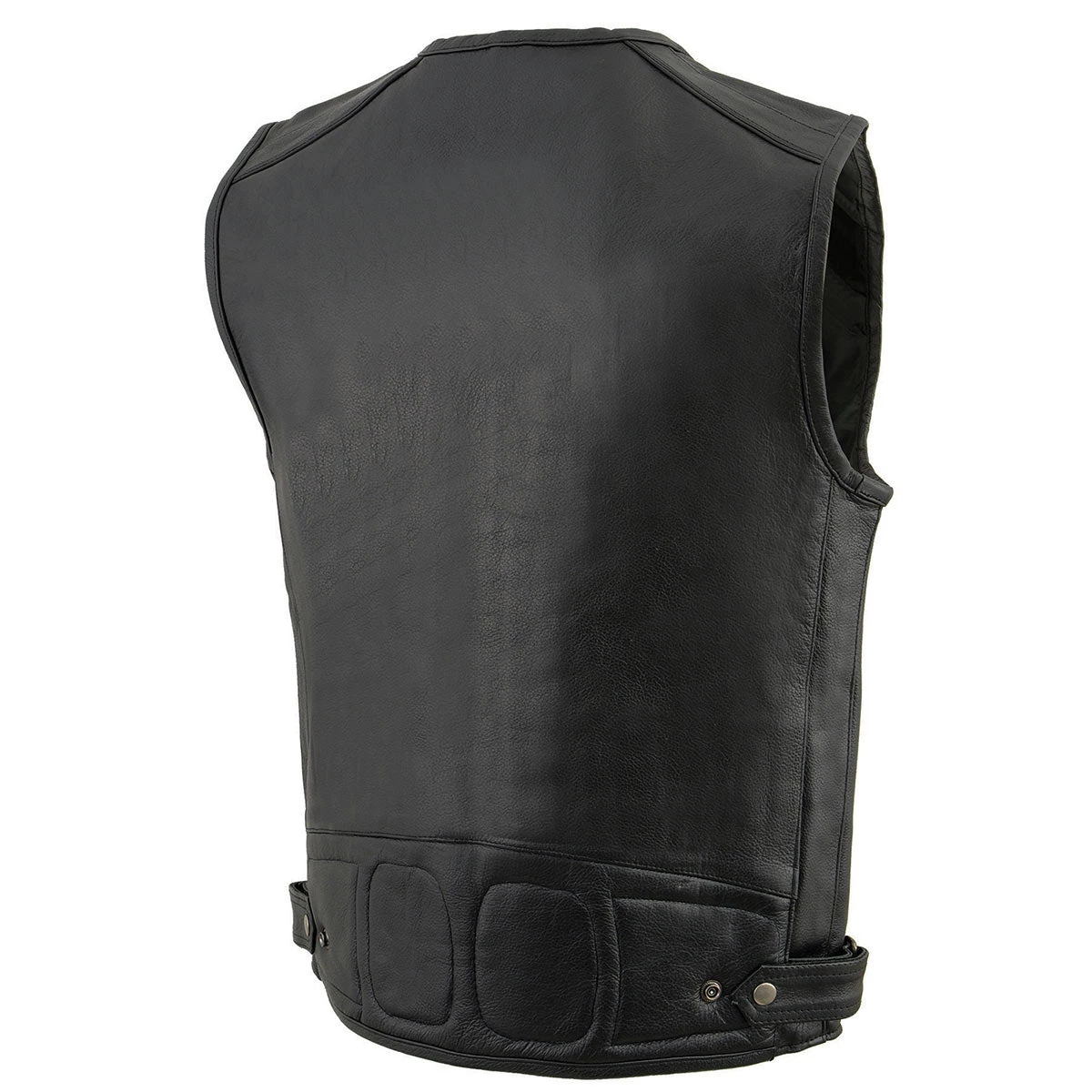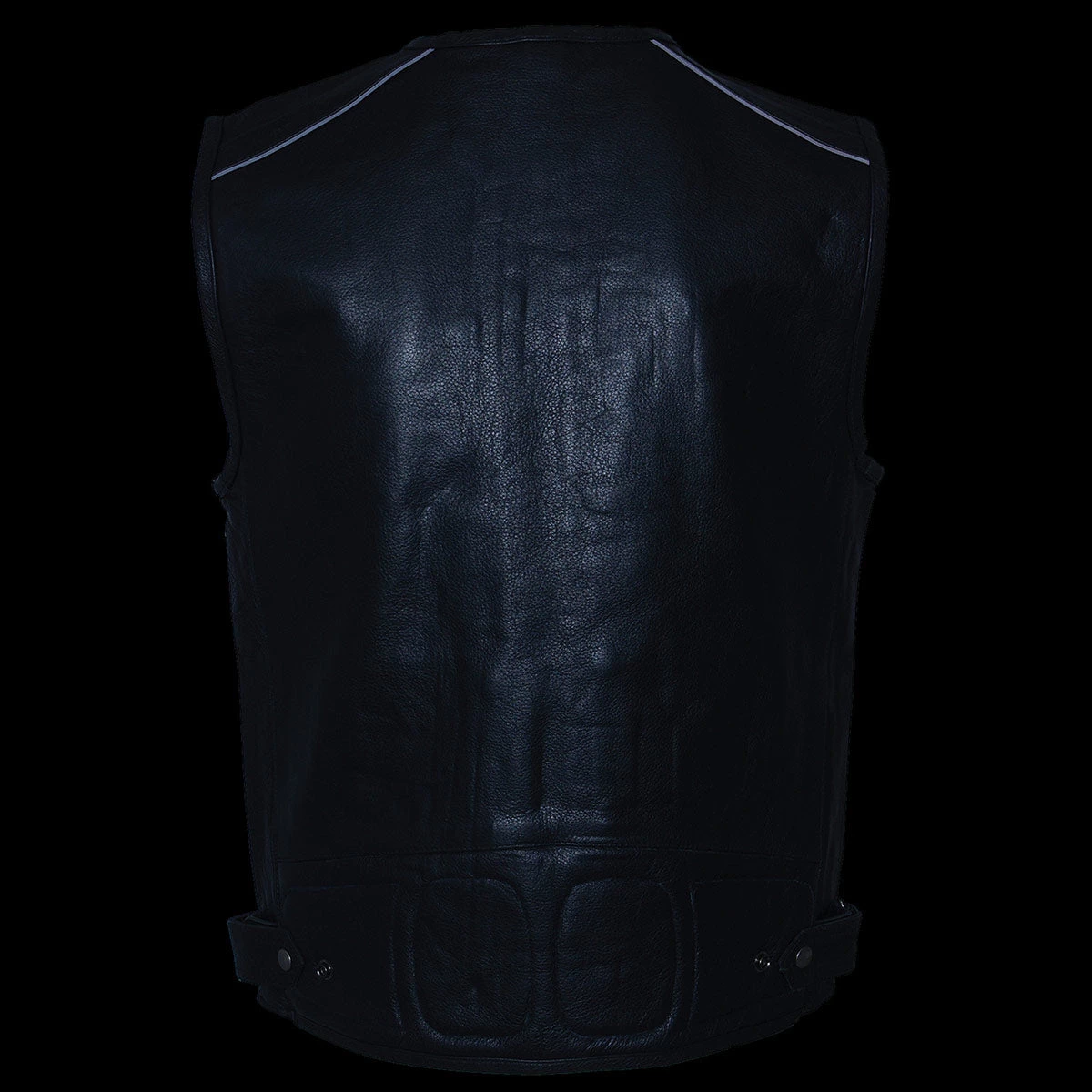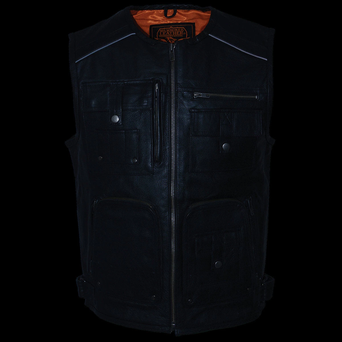 Milwaukee Leather MLM3580 Men’s Black Leather Zipper Front Super Utility Multi Pocket Vest
