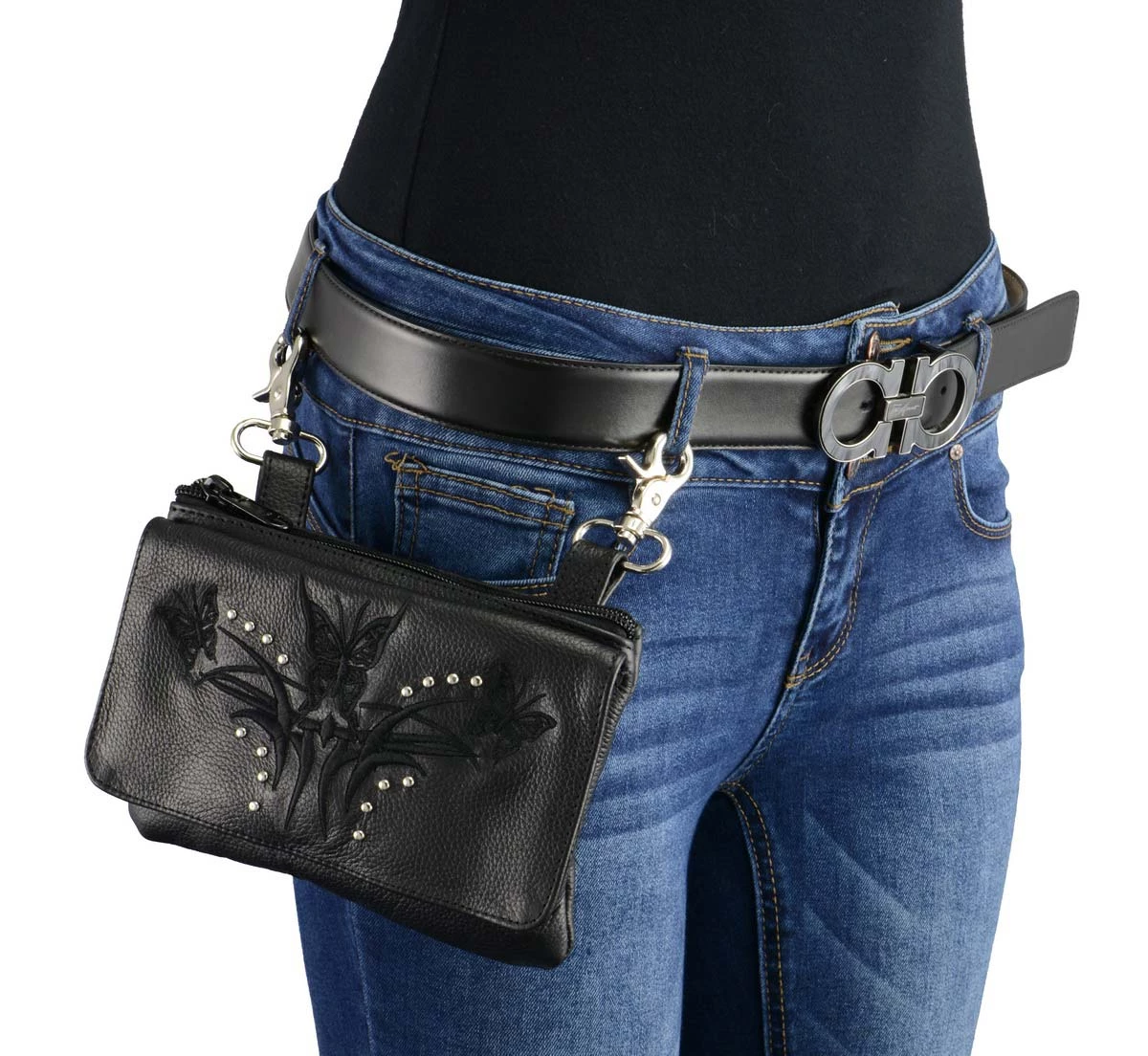 Milwaukee Leather MP8851 Women’s Black Leather Multi Pocket Belt Bag