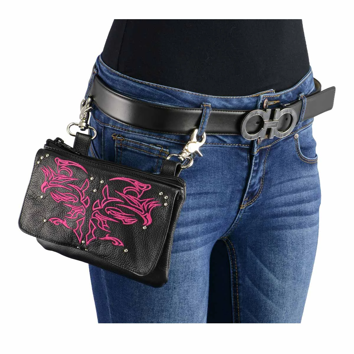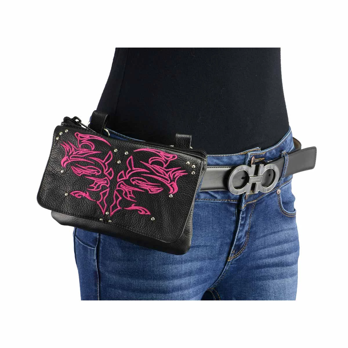 Milwaukee Leather MP8852 Women’s Black and Pink Leather Multi Pocket Belt Bag