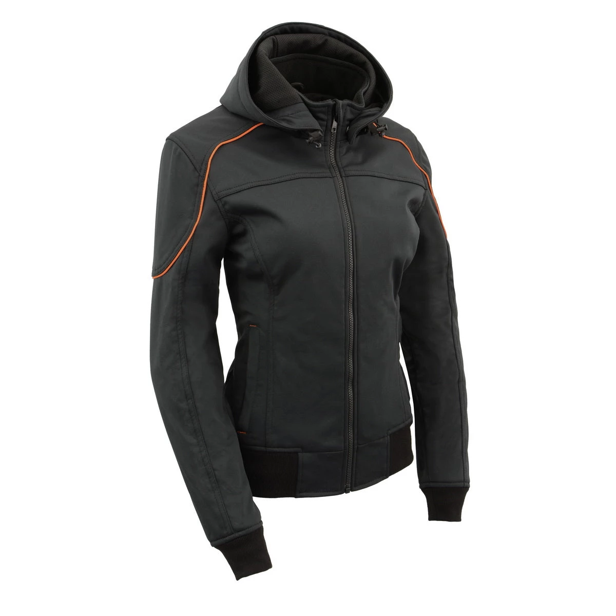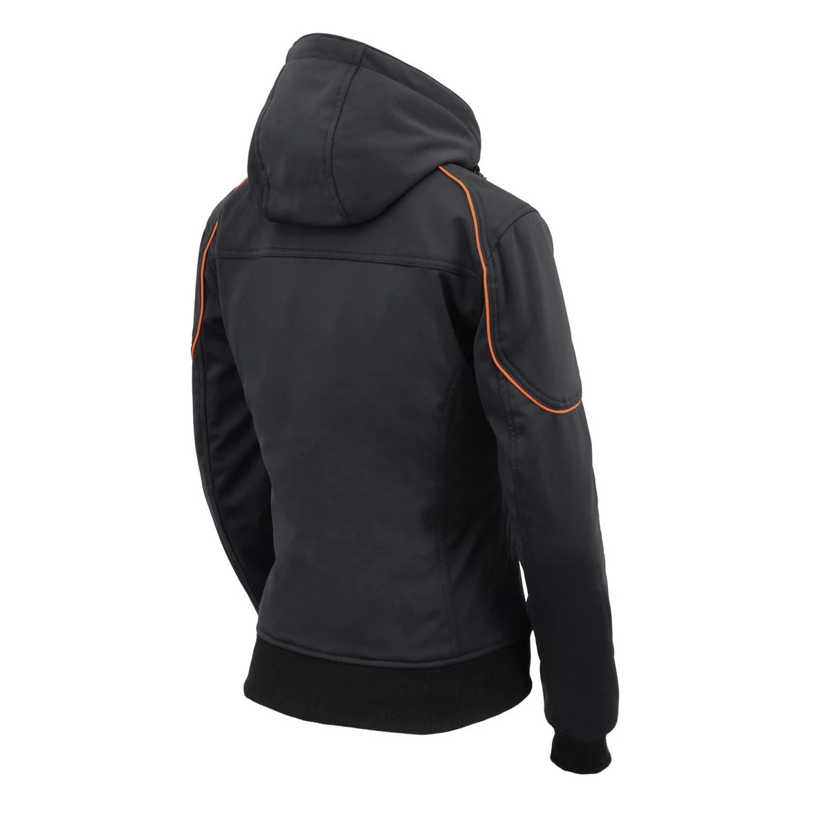 Milwaukee Leather MPL2764 Women’s Black Soft Shell Armored Racing Style Jacket with Hoodie